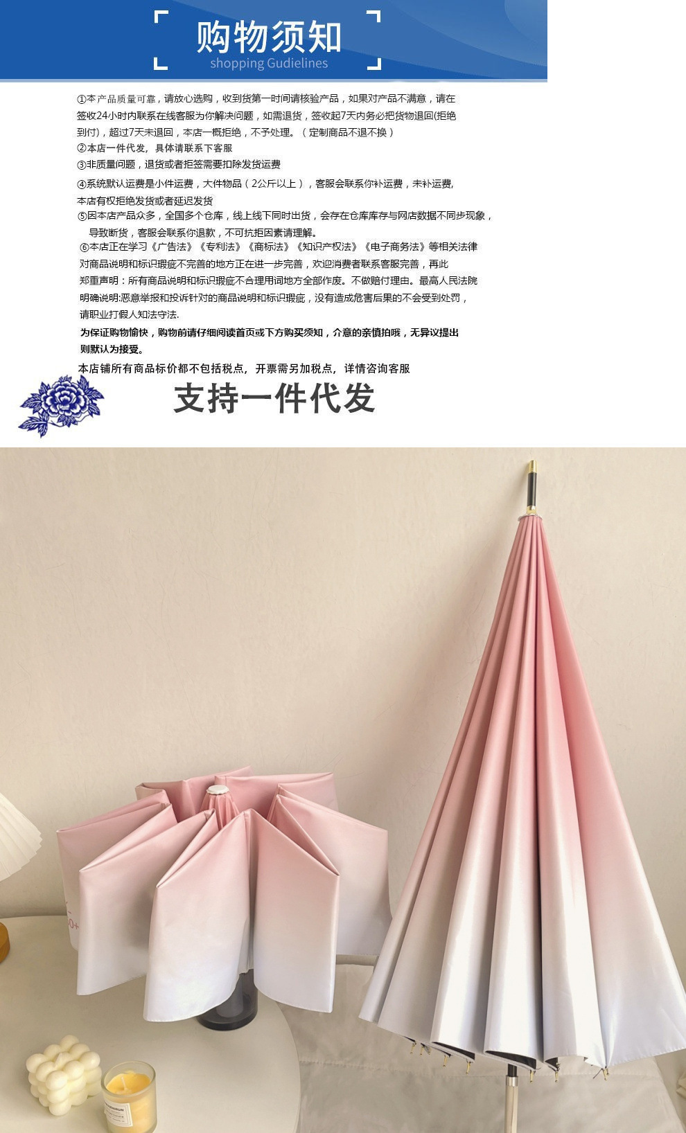 여성용 고급스러운 핑크 그라데이션 우산, 긴 손잡이, 자동 비닐 자외선 차단제, 자외선 차단, 비 또는 빛 우산스토어 가기