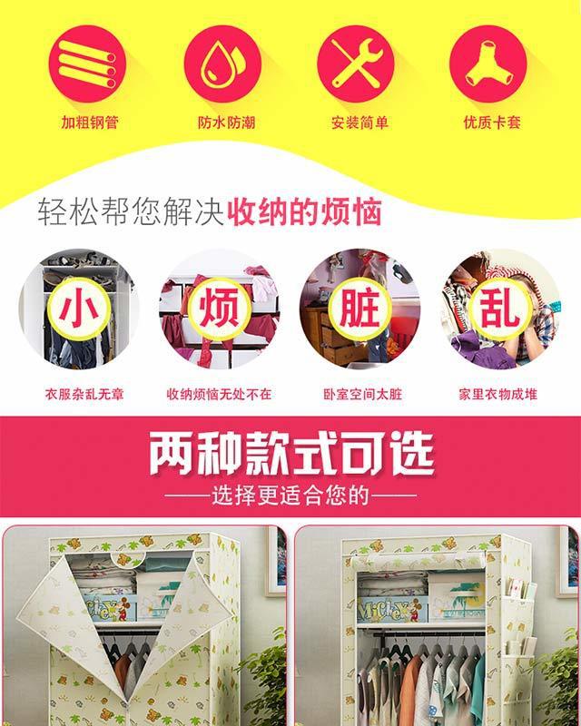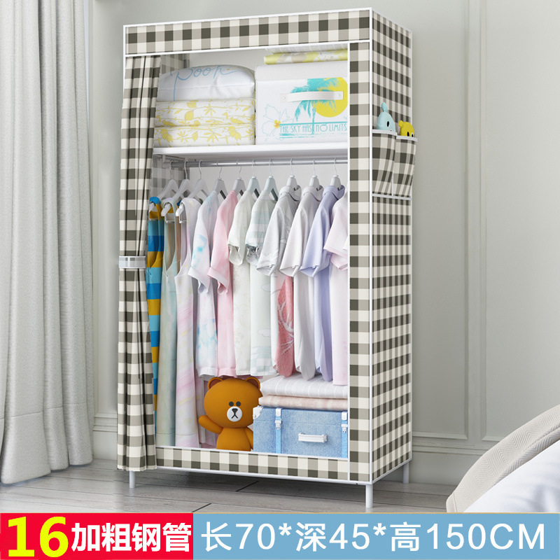 간단한 옷장 작은 옷장 싱글 기숙사 천 옷장 두꺼운 강철 파이프 학생 작은 옷장 보관 및 정리 캐비닛