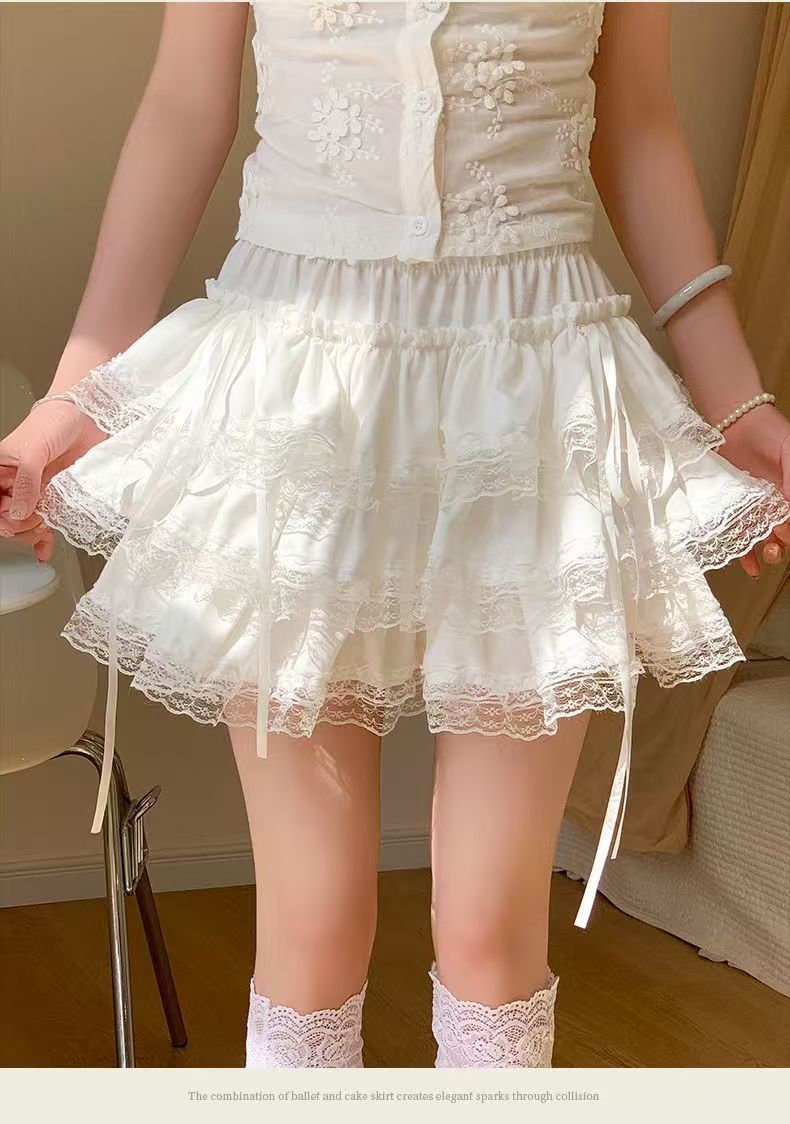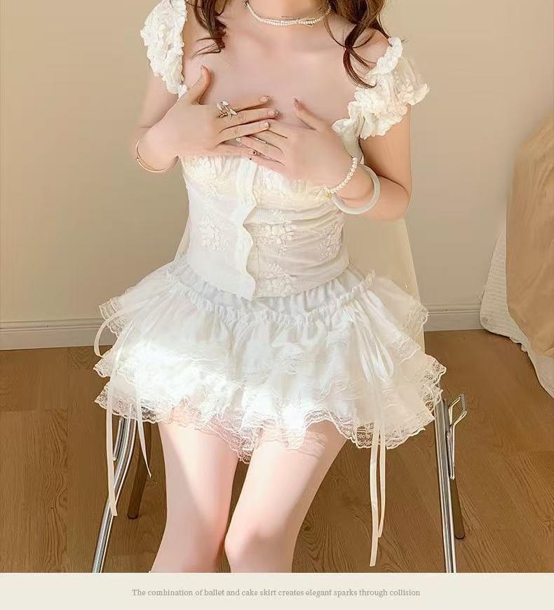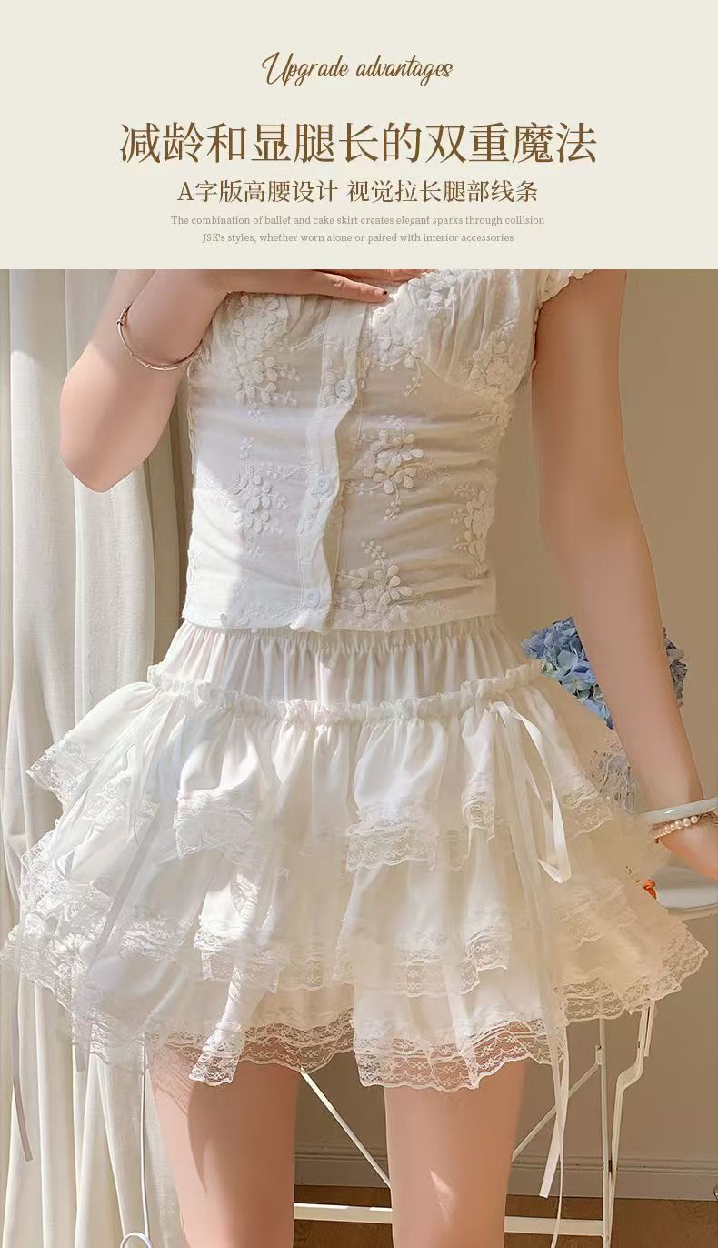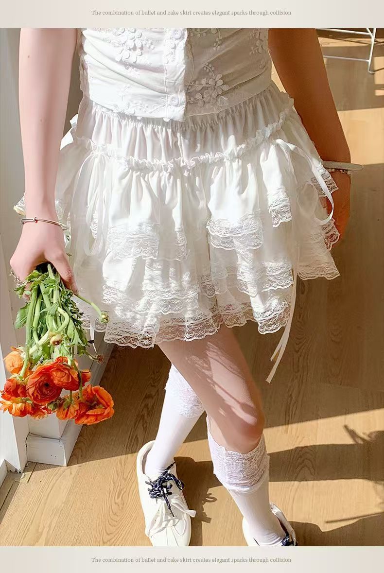 순수한 욕망 스타일 달콤한 레이스 푹신한 스커트 봄과 여름 새로운 발레 스타일 작은 하이 웨이스트 A 라인 케이크 스커트