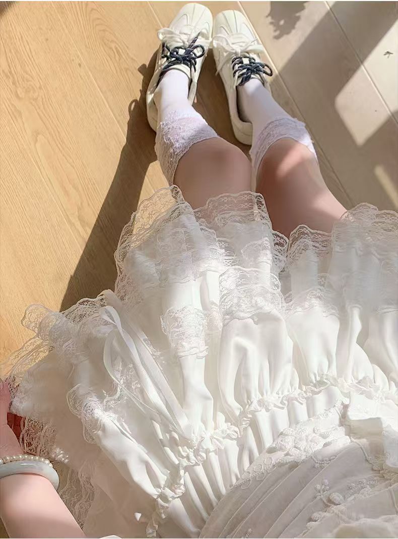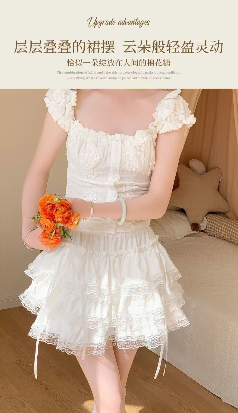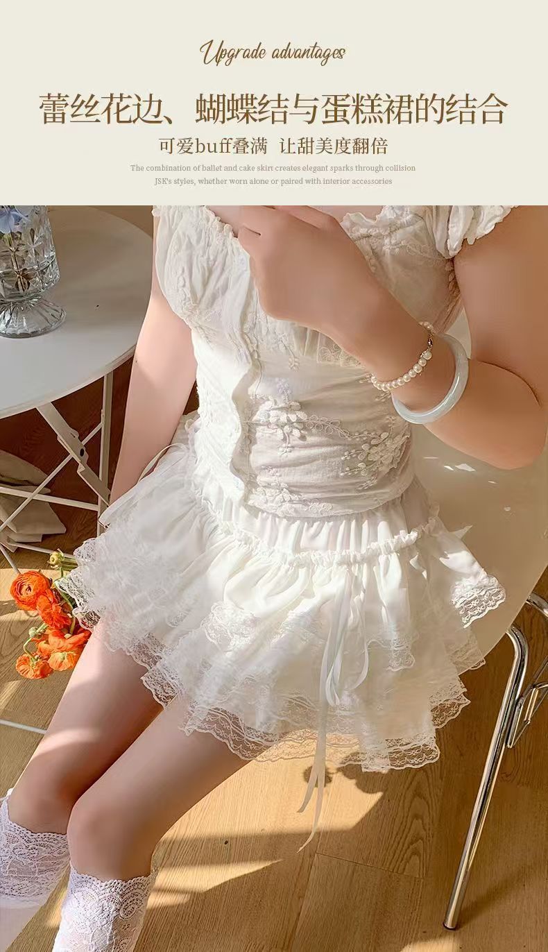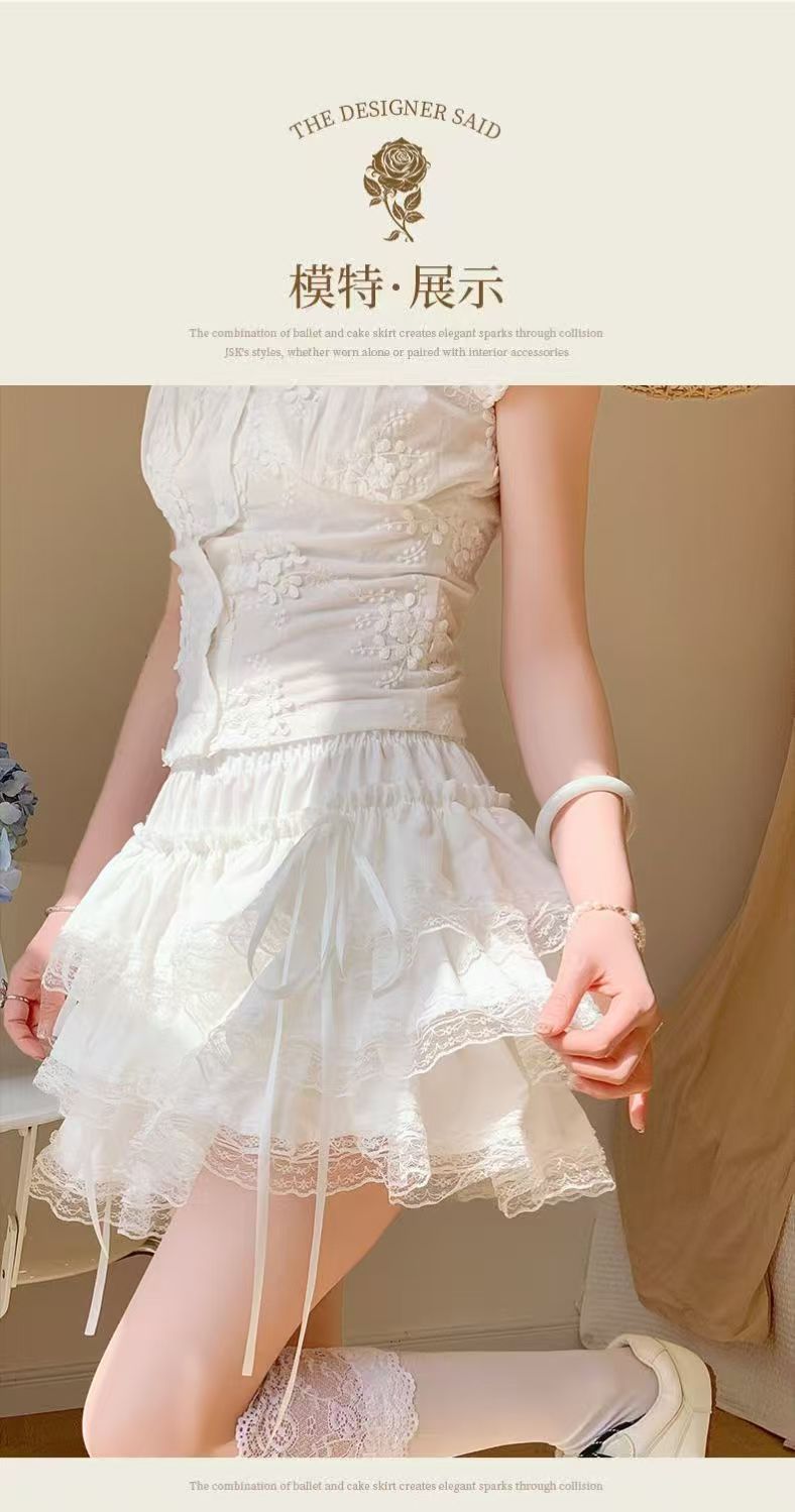 순수한 욕망 스타일 달콤한 레이스 푹신한 스커트 봄과 여름 새로운 발레 스타일 작은 하이 웨이스트 A 라인 케이크 스커트