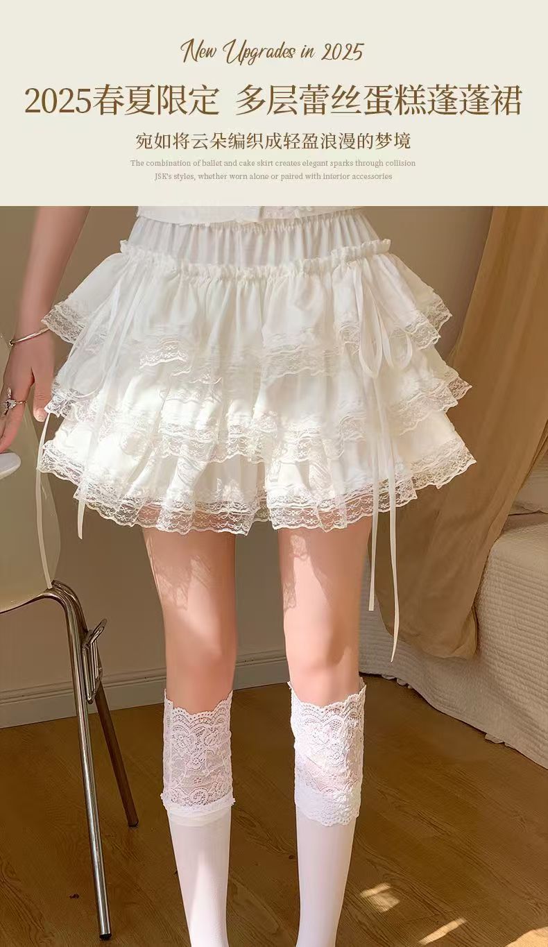 순수한 욕망 스타일 달콤한 레이스 푹신한 스커트 봄과 여름 새로운 발레 스타일 작은 하이 웨이스트 A 라인 케이크 스커트스토어 가기