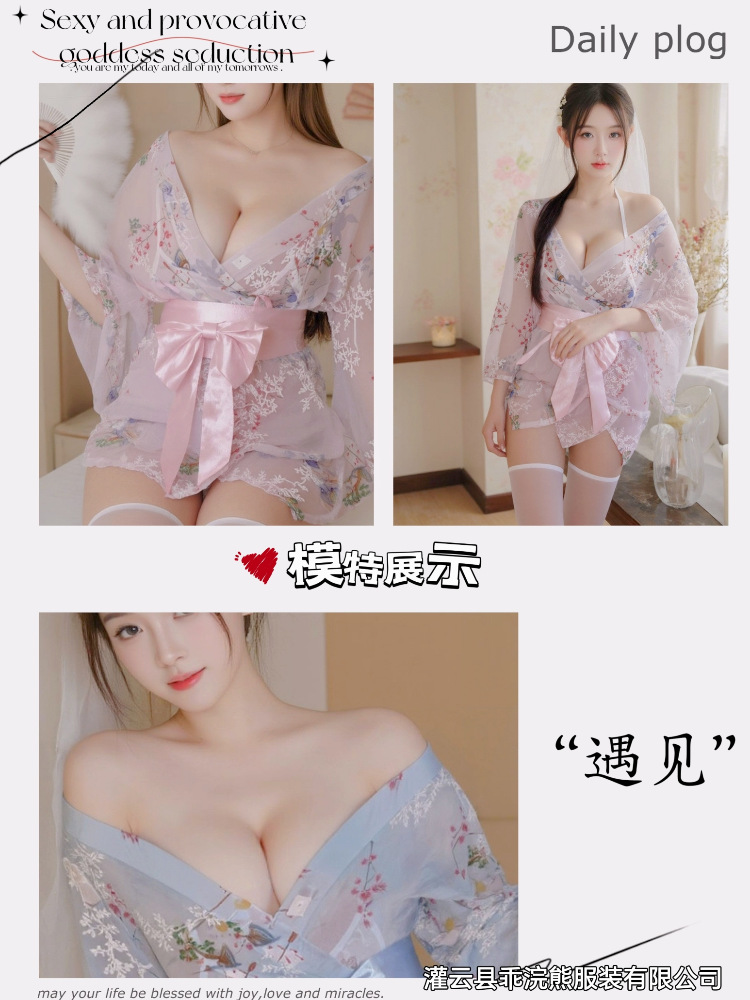 일본 섹시 기모노 브이넥 유니폼 유혹과 열정 새로운 스타일 탈착 불가 섹시 가디건 잠옷 3점 슈트스토어 가기