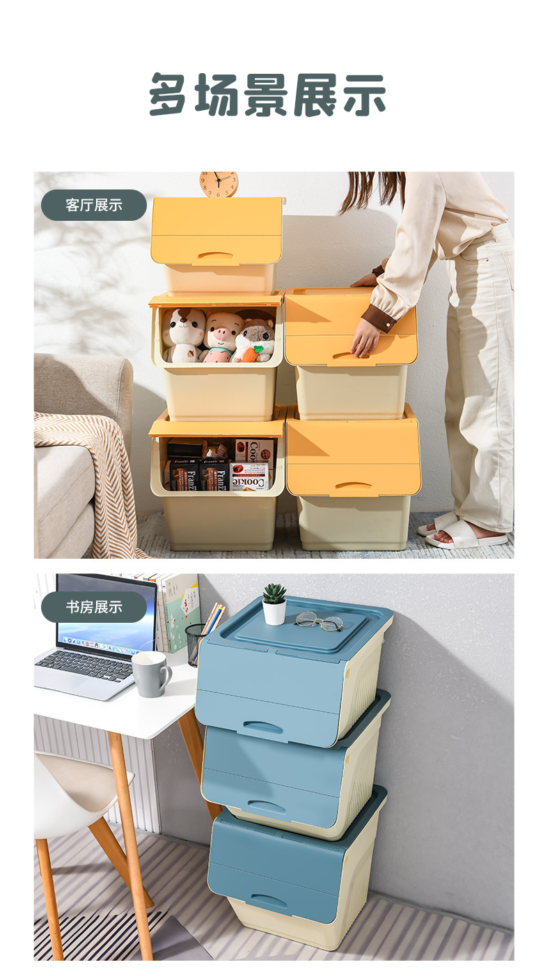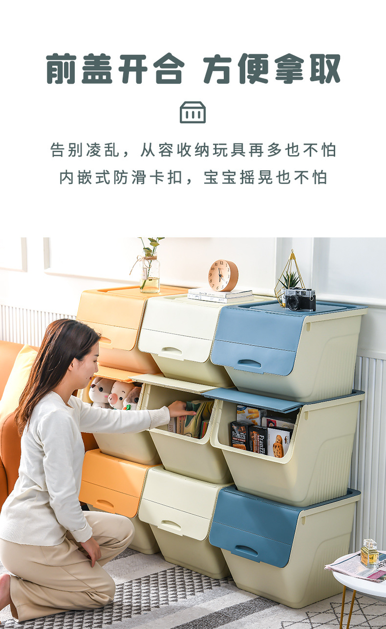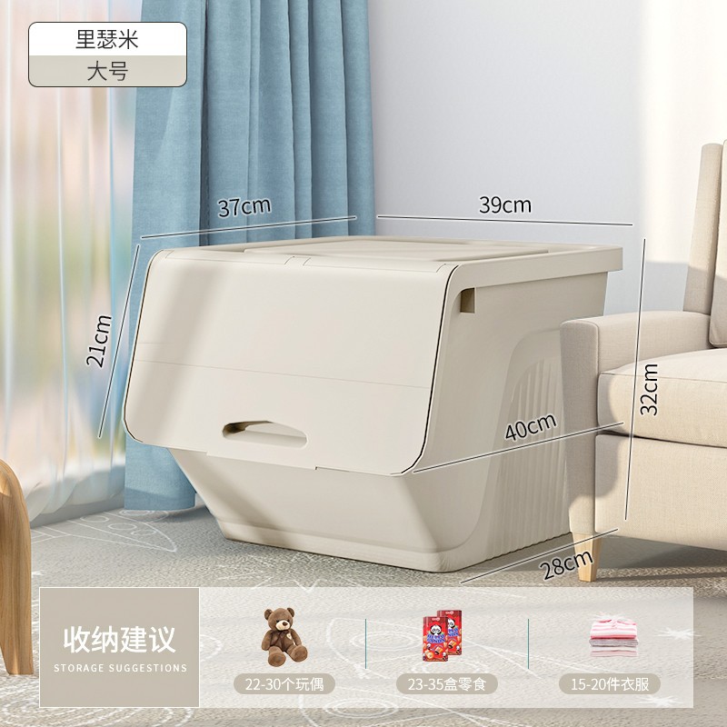 플립 탑이있는 장난감 보관 상자 가정용 보관 상자 플라스틱 보관 상자 어린이 간식 경사 개방형 보관 상자