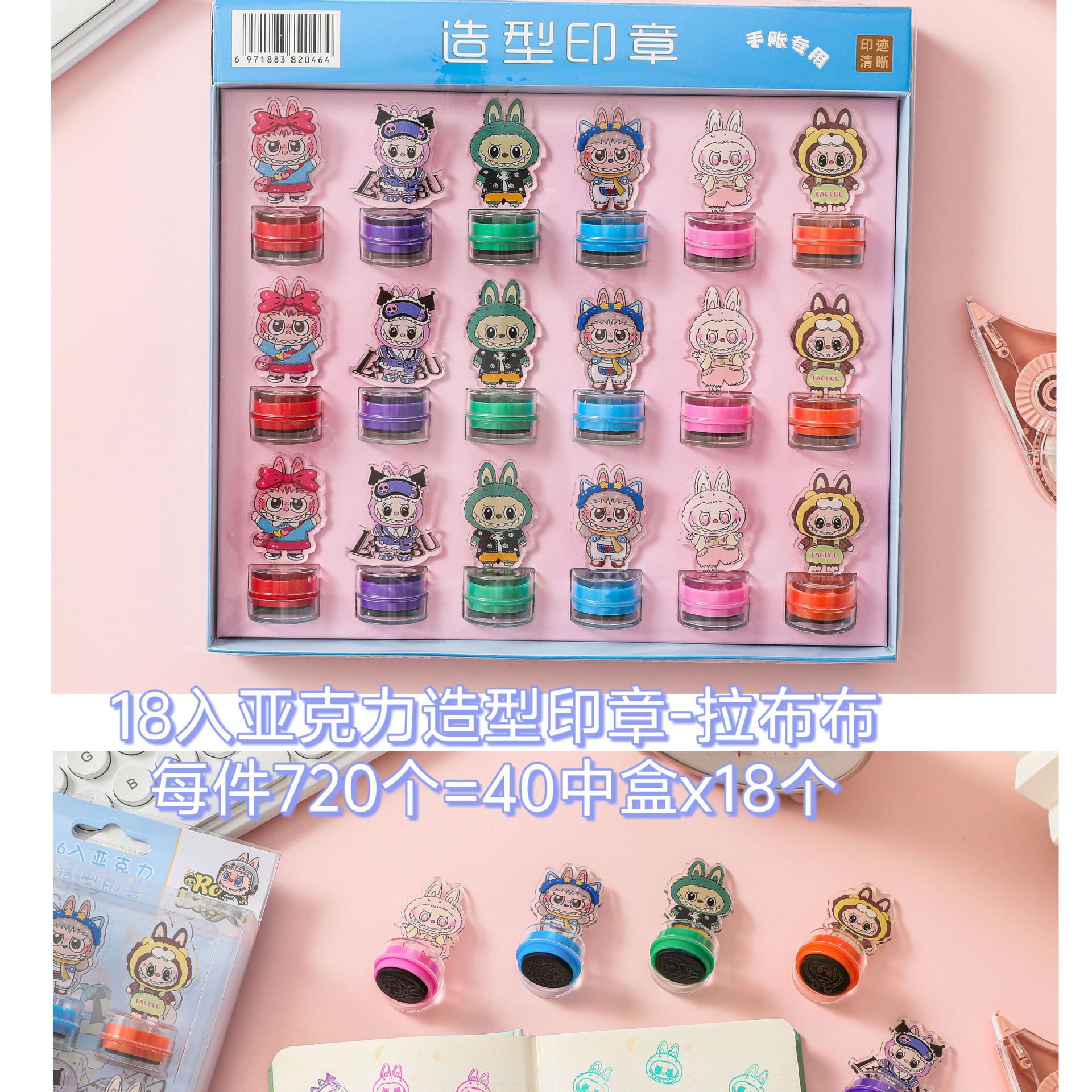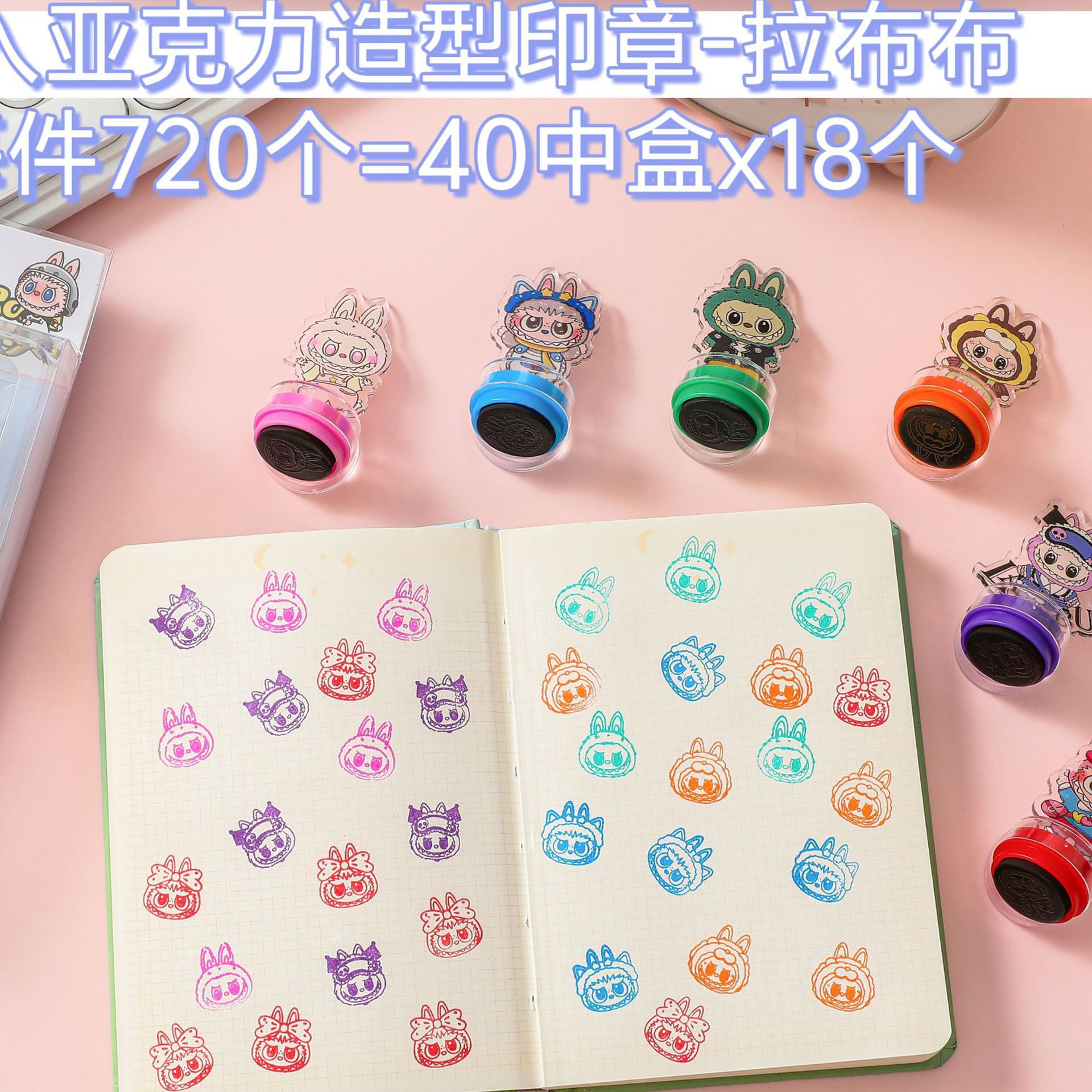 국경을 넘는 새로운 LABUBU 18피스 아크릴 스탬프 LABUBU 귀여운 장식품 어린이 스탬프 보상 스탬프 배치