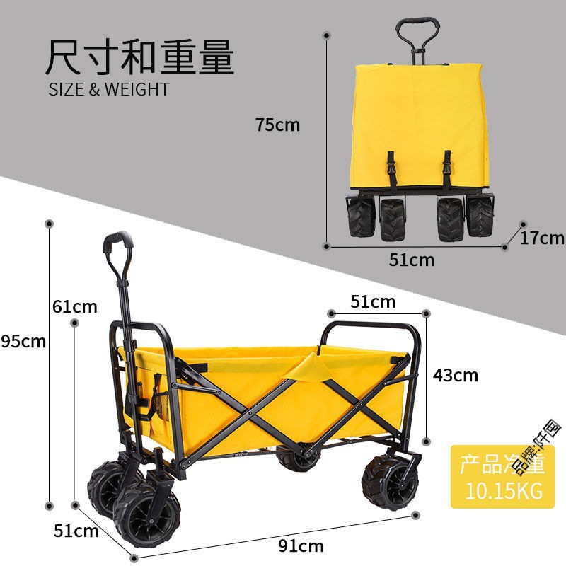 접이식 휴대용 캠프 트레일러 쇼핑 야외 캠핑 쇼핑 및 낚시를 위한 4륜 트롤리 캠핑 벽돌스토어 가기