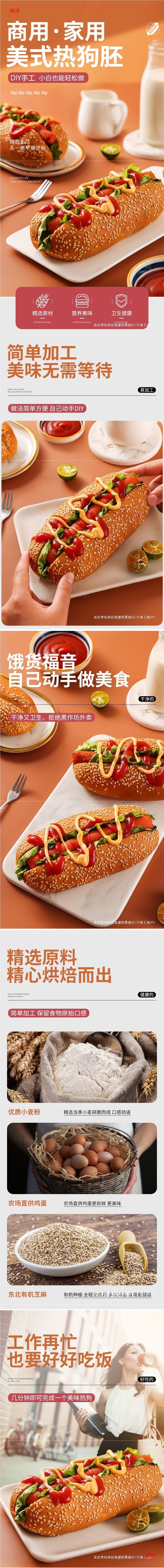 미국식 핫도그빵 원형 바로 먹을 수 있는 상업용 반제품 소시지 버거빵 원형 가정용 빵 아침식사 식품