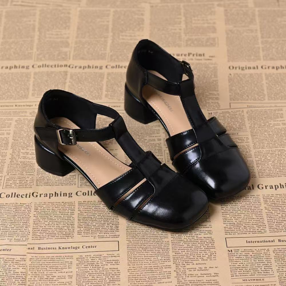 속이 빈 복고풍 중공 로마 신발, 여성용 편안한 발가락 샌들, 2025 봄 여름 스타일, 다용도 두꺼운 굽 샌들스토어 가기