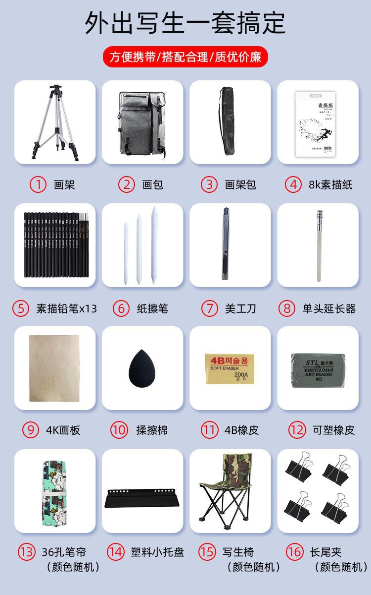 알루미늄 합금 이젤 미술 학생 그림 스탠드 스케치 도구 세트 스케치 4K 드로잉 보드 접이식 스탠드 전체 세트