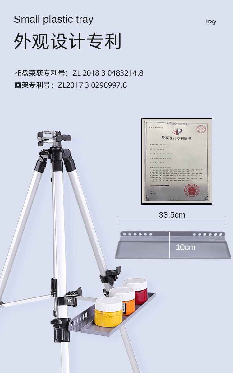 • 03수동식 은색 알루미늄 이젤 + 회색 플라스틱 작은 트레이