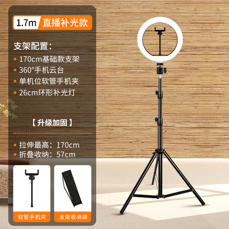 • 1.7m 휴대폰 홀더 + 26cm 링 라이트 [업그레이드 및 강화] 단일 카메라 + Douyin 셀카 + 무료 보관 가방