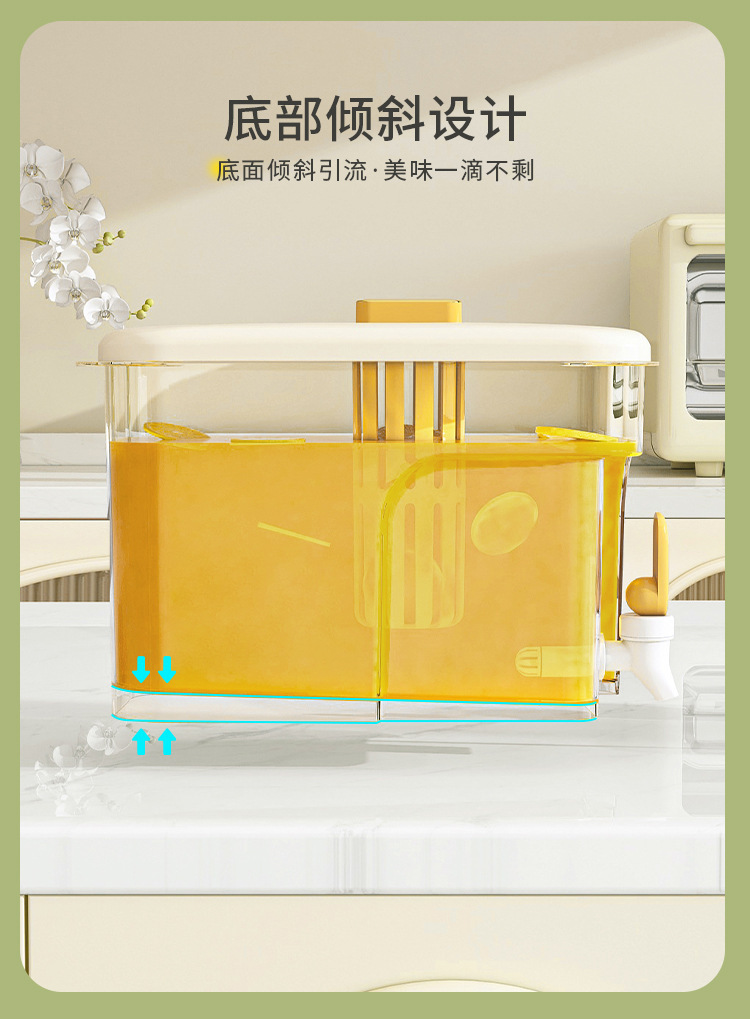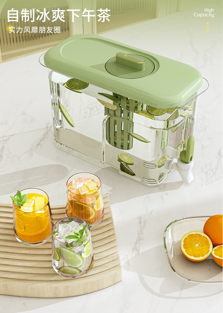 수도꼭지가있는 냉장고 냉수병 대용량 고온 방지 가정용 두꺼운 밀봉 주스 과일 차 음료 버킷 냉수병
