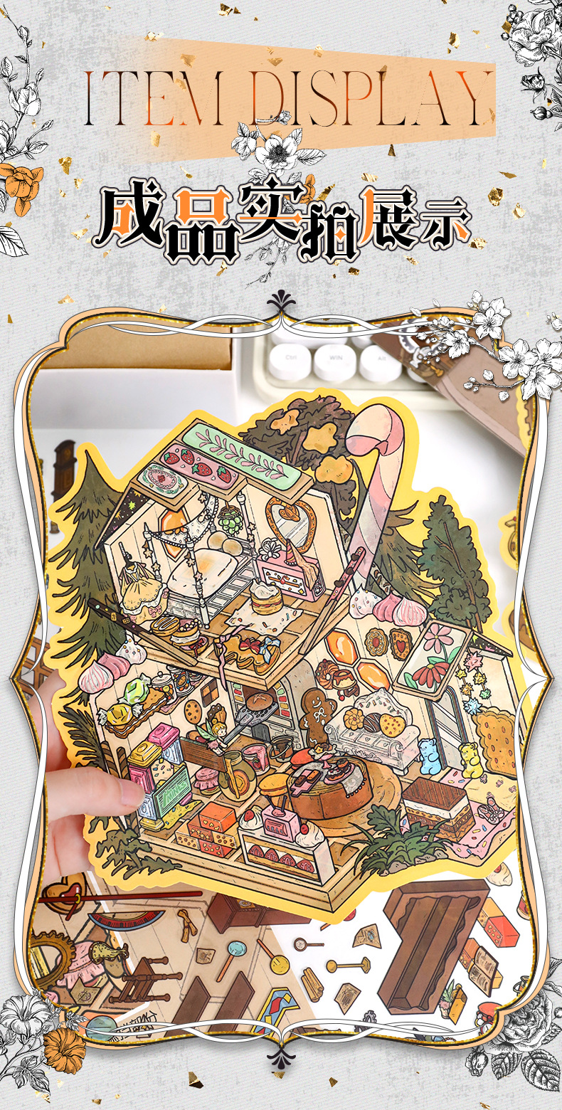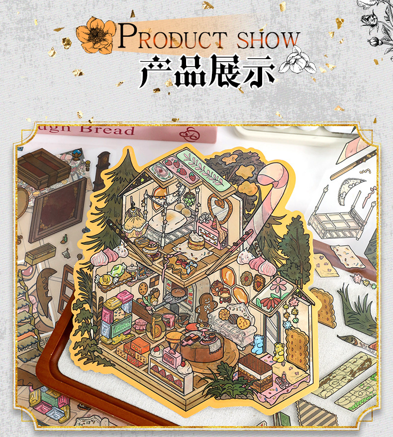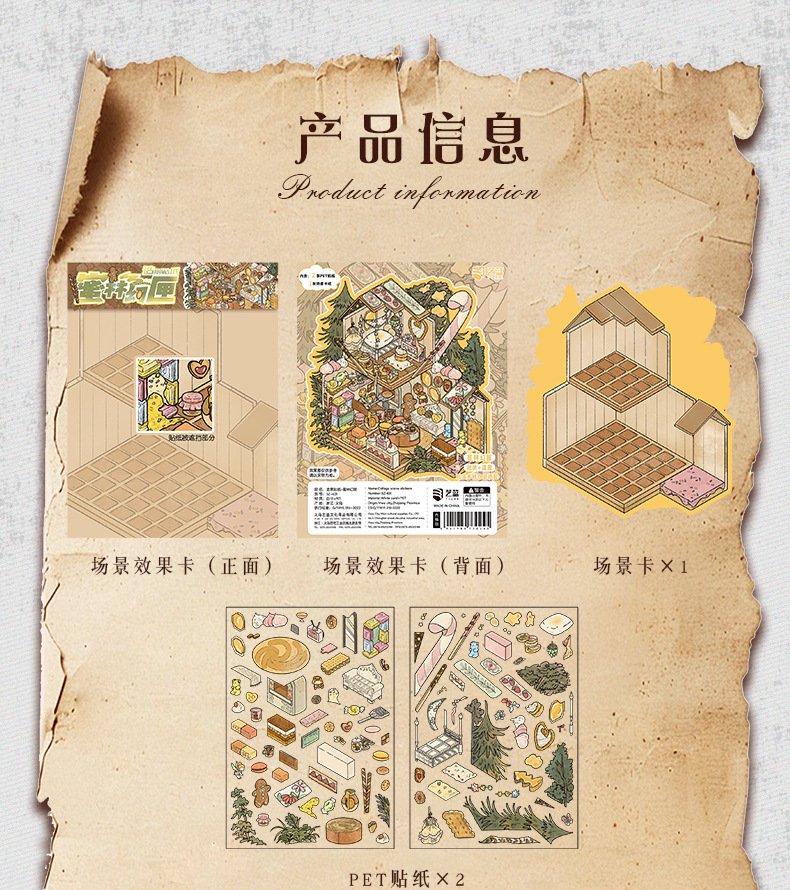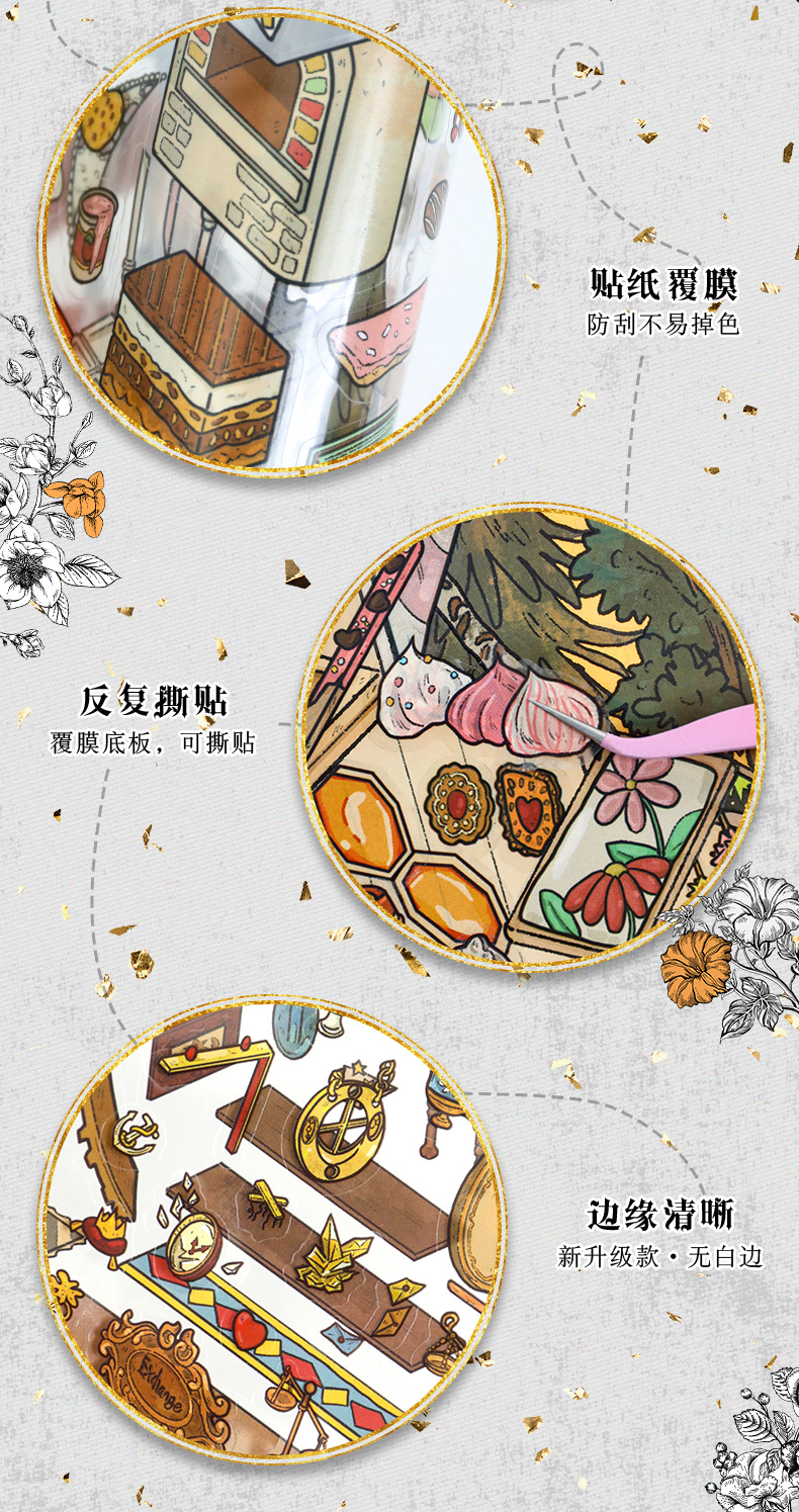 68.0 예술적 파란색 조경 스티커 복고풍 대형 장면 스티커 3D 입체 스티커 diy 감압 핸드북 스티커스토어 가기