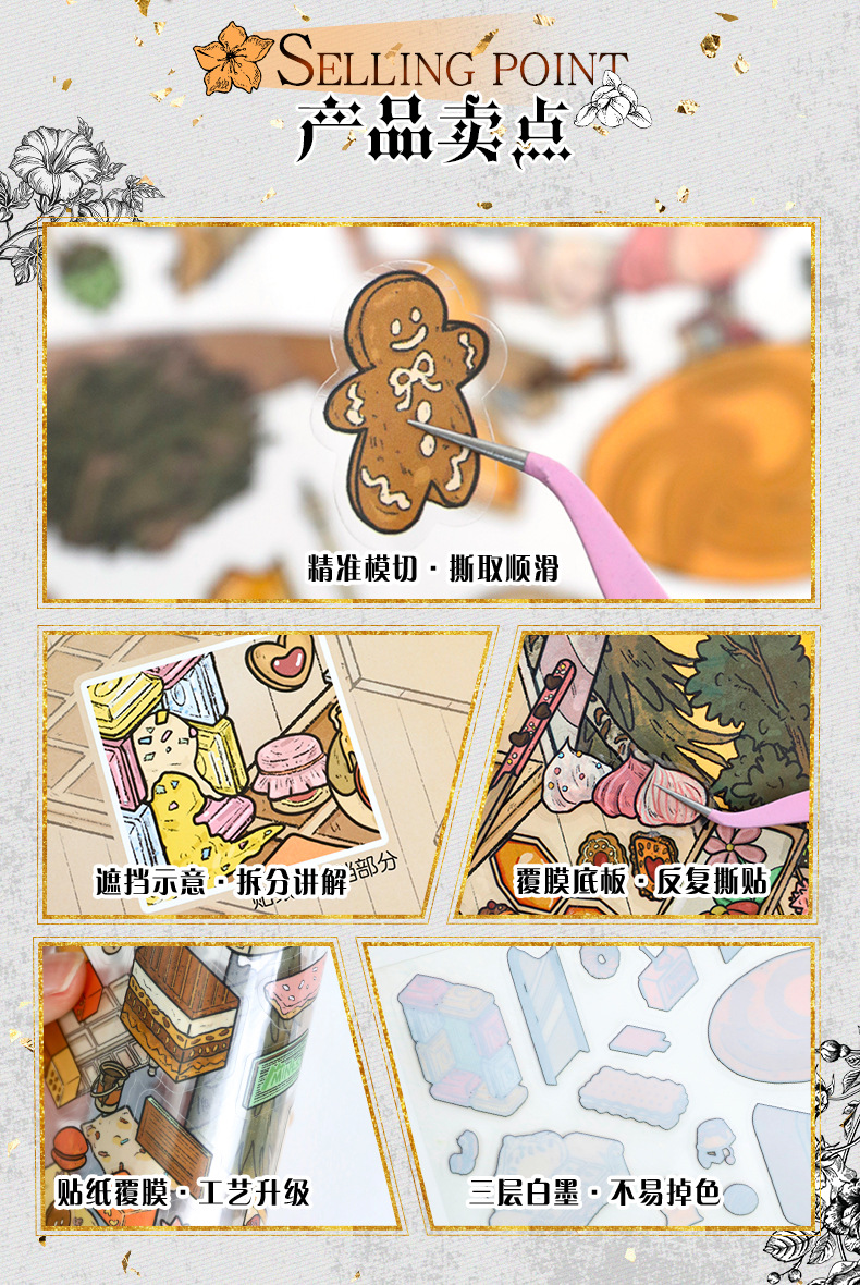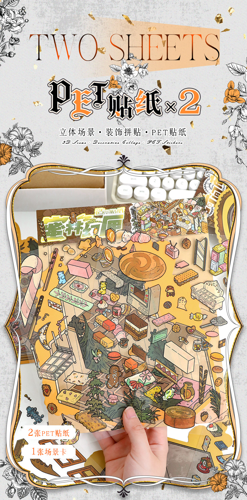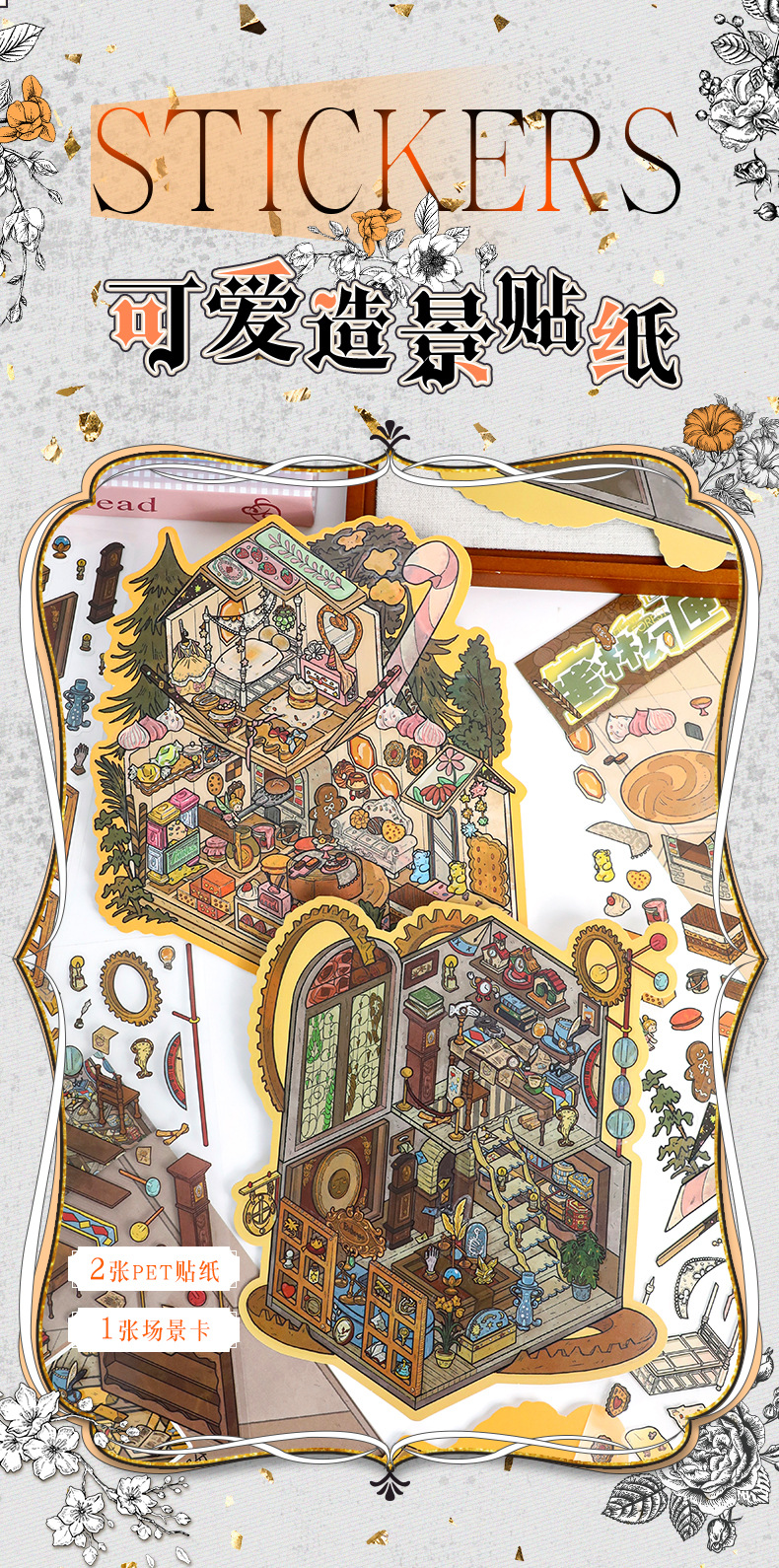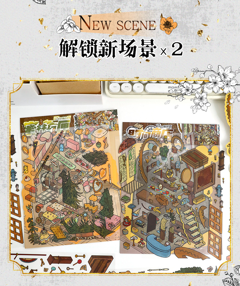68.0 예술적 파란색 조경 스티커 복고풍 대형 장면 스티커 3D 입체 스티커 diy 감압 핸드북 스티커스토어 가기