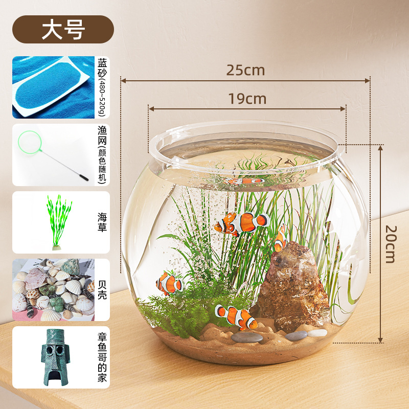 둥근 아크릴 작은 파손 방지 조경 생태 탱크 모조 유리 거실 홈 고화질 작은 물고기 거북이 수조