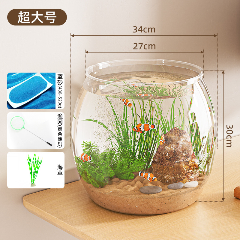 둥근 아크릴 작은 파손 방지 조경 생태 탱크 모조 유리 거실 홈 고화질 작은 물고기 거북이 수조스토어 가기
