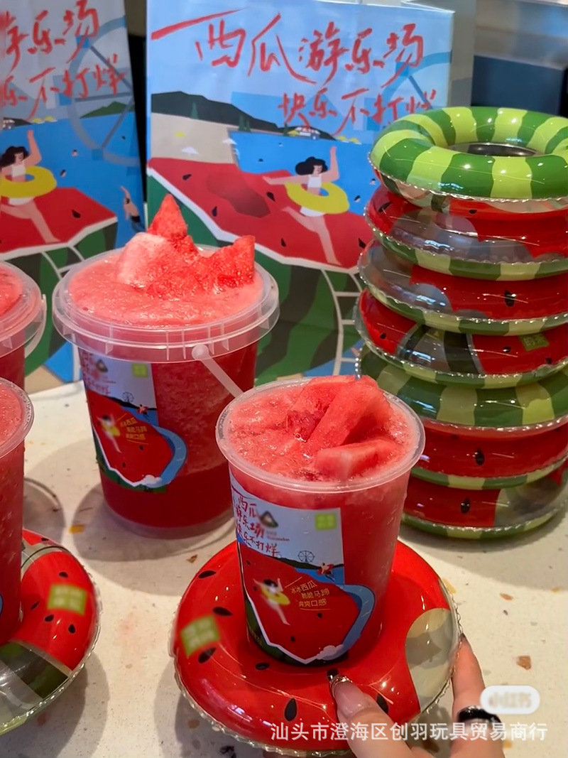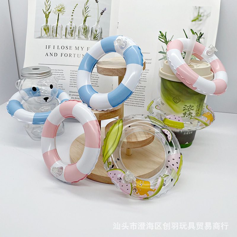 국경 간 아마존 풍선 목욕 장난감 미니 수영 반지 수박 아이스크림 컵 커버 장식 줄무늬 작은 수영 반지스토어 가기