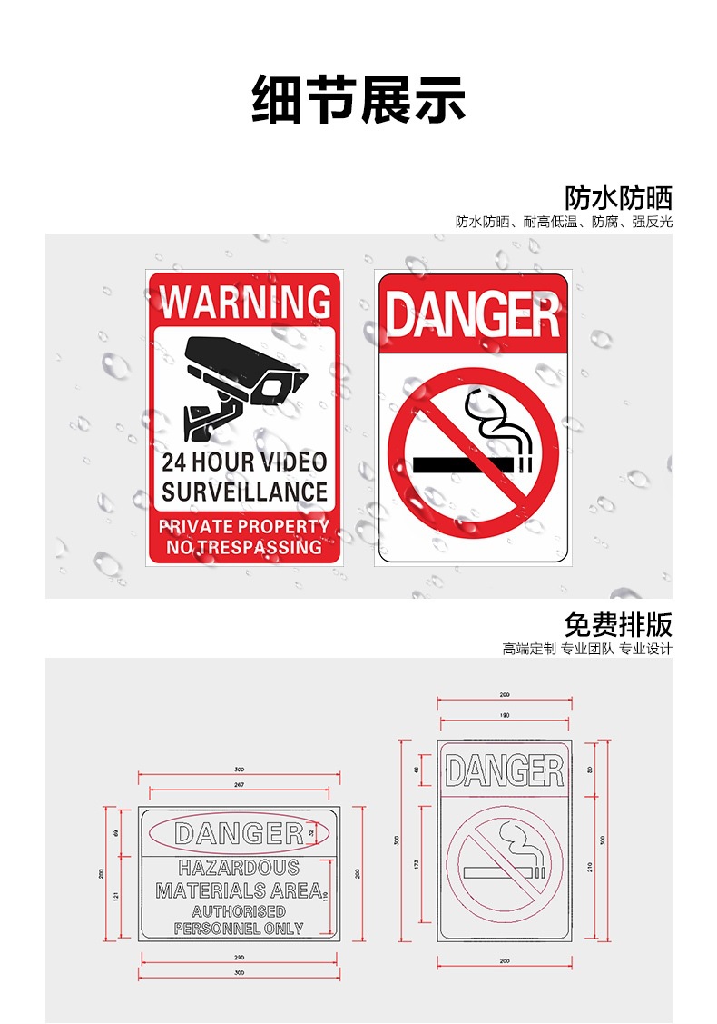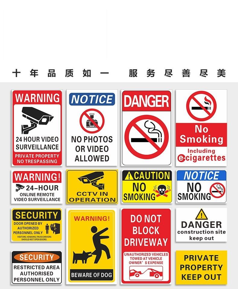대외 무역 영어 표지판 개인 영토 모니터링 지역 안전 경고 표지판 따뜻한 알림 표지판 도로 표지판