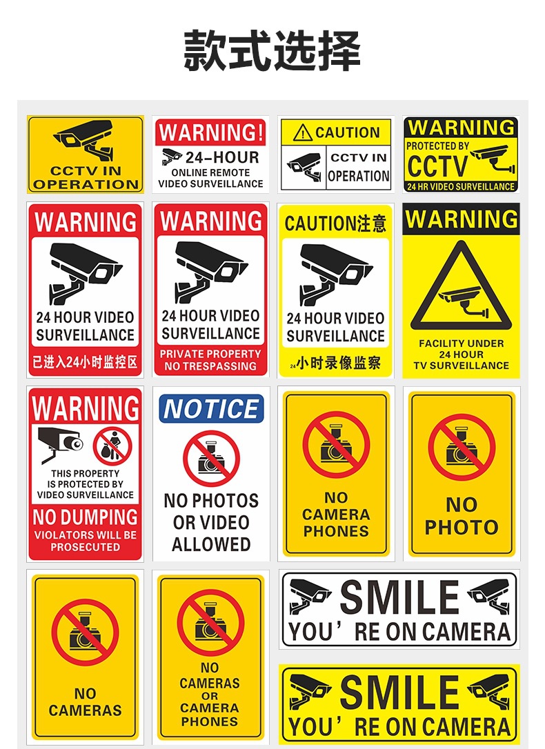 대외 무역 영어 표지판 개인 영토 모니터링 지역 안전 경고 표지판 따뜻한 알림 표지판 도로 표지판스토어 가기