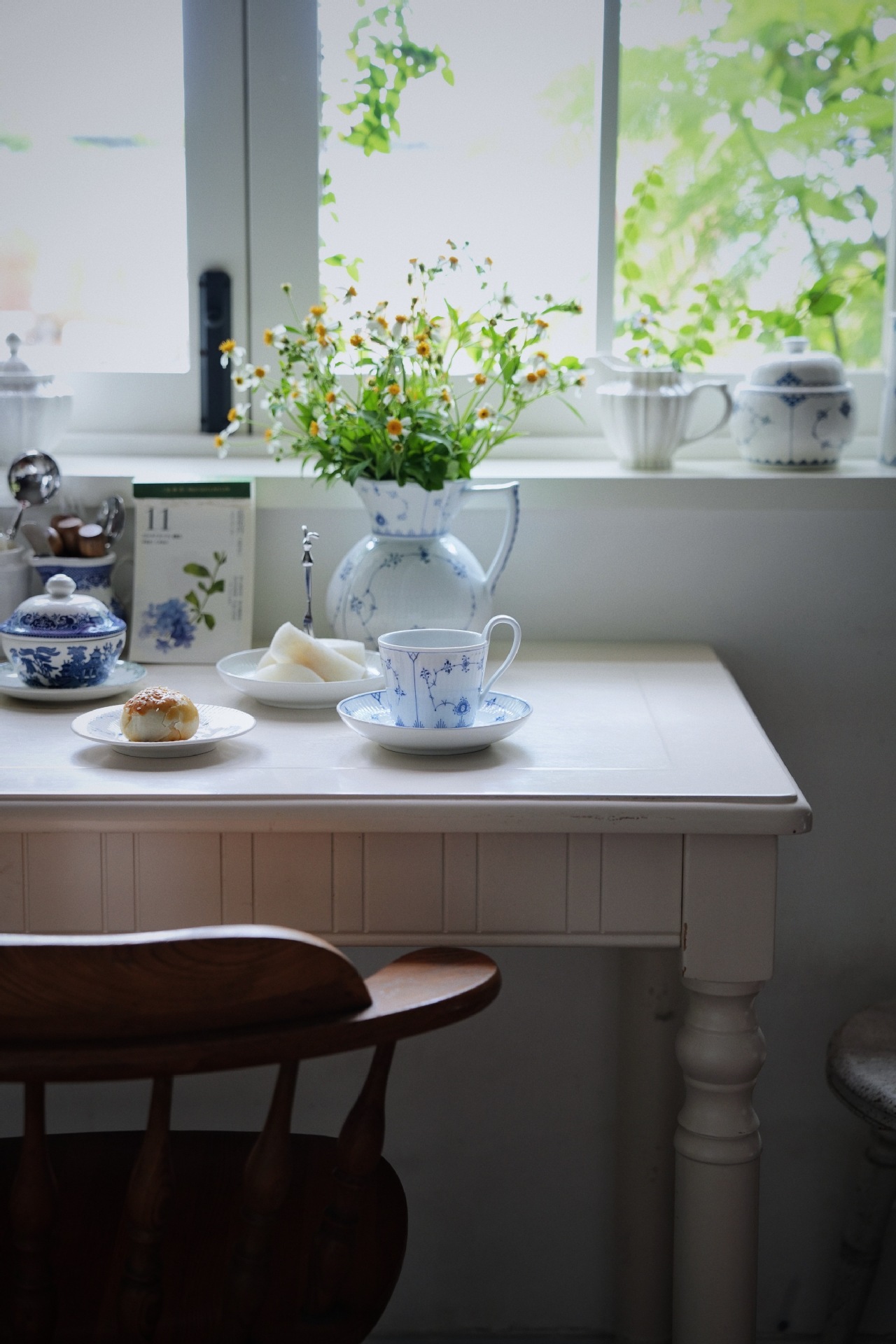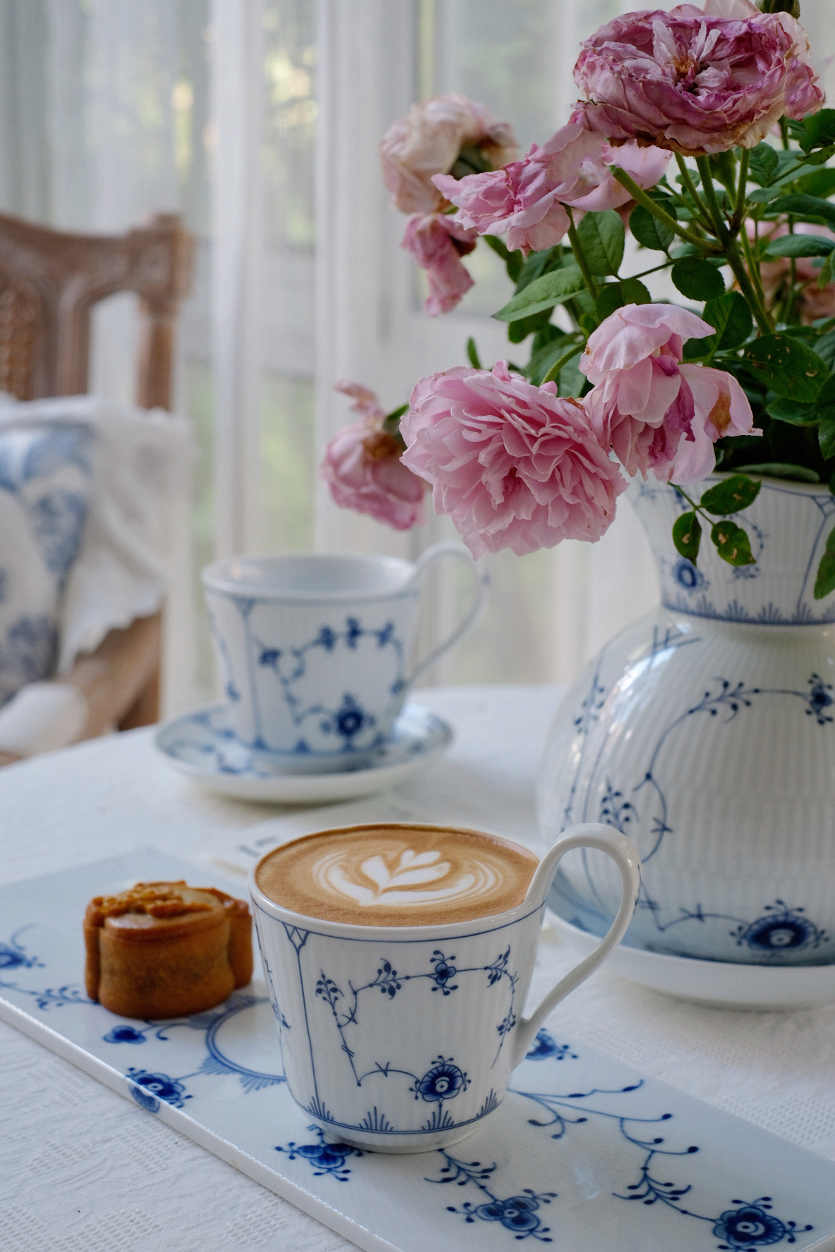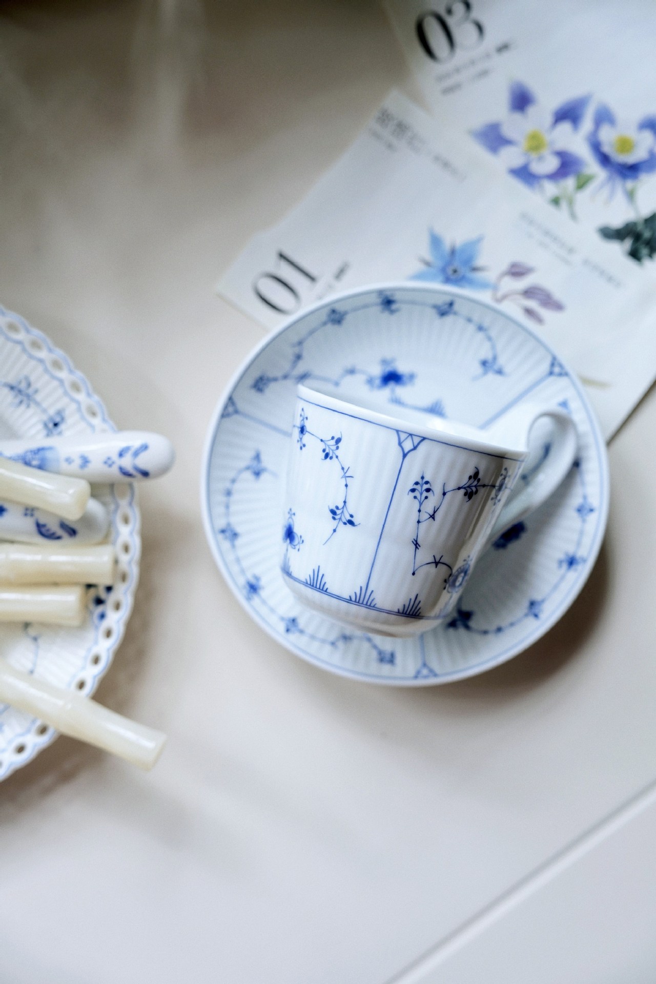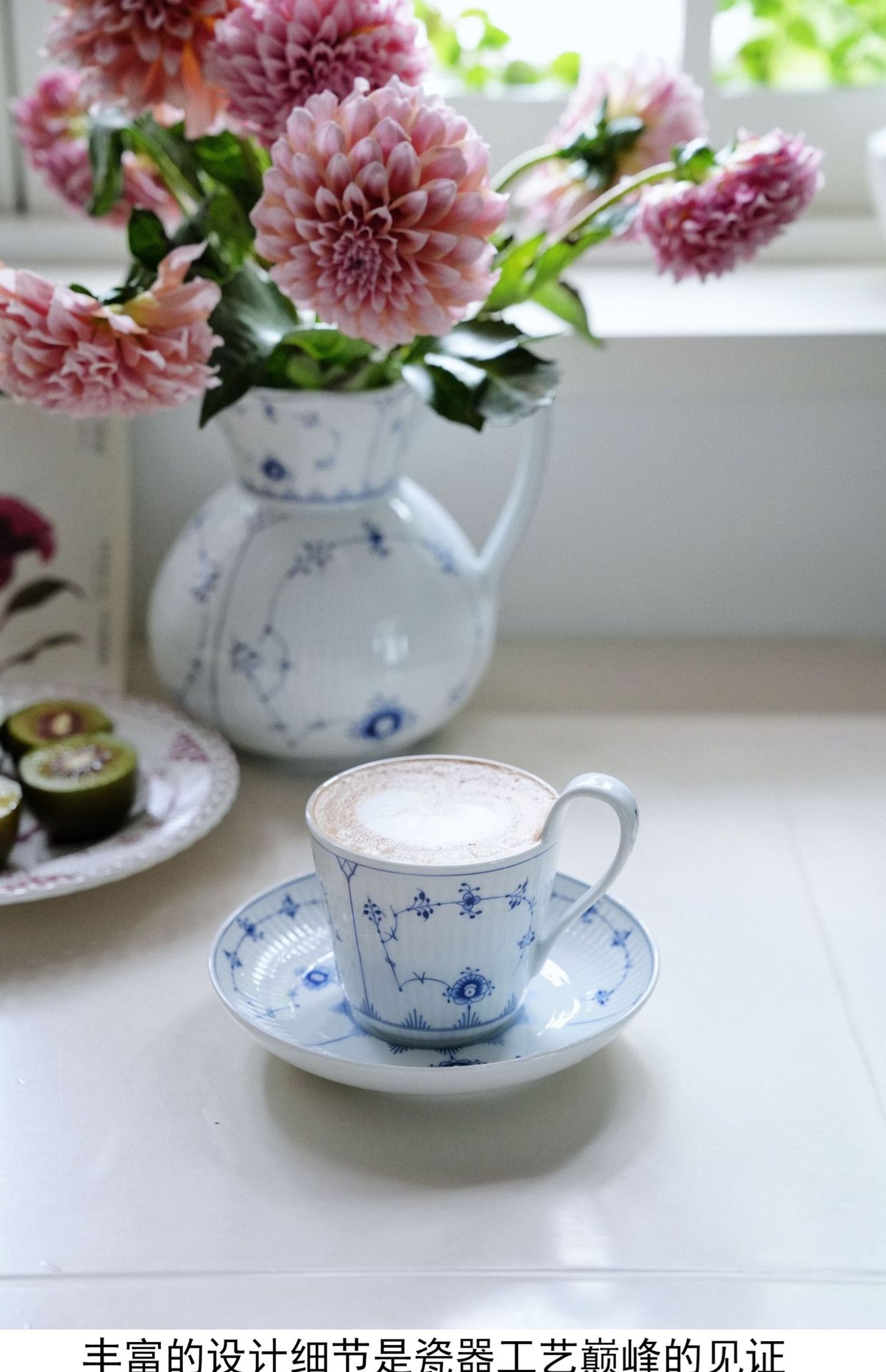 커피 라떼 아트 컵 새로운 중국 스타일 Jingdezhen 세라믹 컵과 접시 세트 홈 라떼 커피 컵 파란색과 흰색 underglaze 컬러 컵