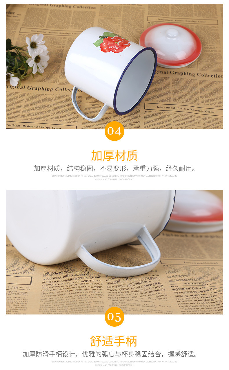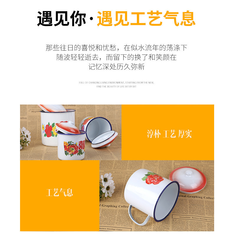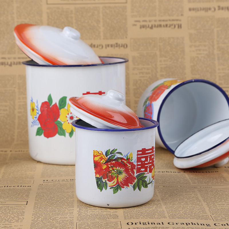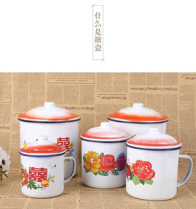 클래식 향수 에나멜 컵 뚜껑이 달린 철제 차병 대형 사무실 호텔 구식 더블 해피 웨딩 꽃 물컵스토어 가기