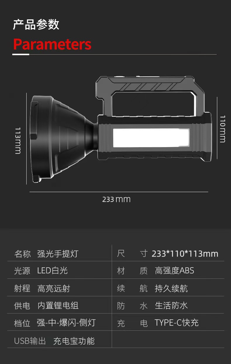 국경 간 강한 빛 휴대용 램프 led 충전식 손전등 가정용 야외 비상 휴대용 캠핑 램프 건설 현장 서치라이트