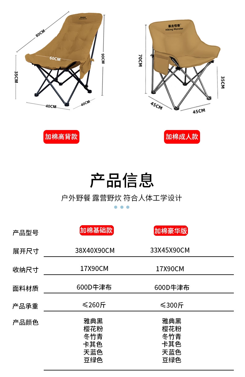 러쉬 몬스터 접이식 의자 안락 의자 피크닉 의자 캠핑 의자 달 의자 플러스 코튼 가을, 겨울 휴대용 야외 레저