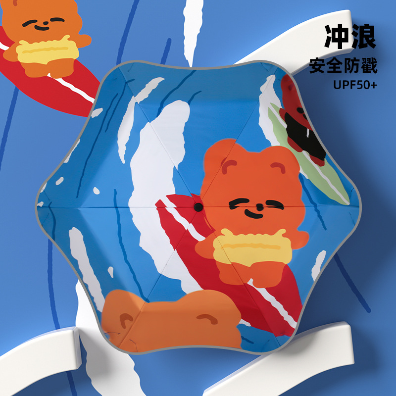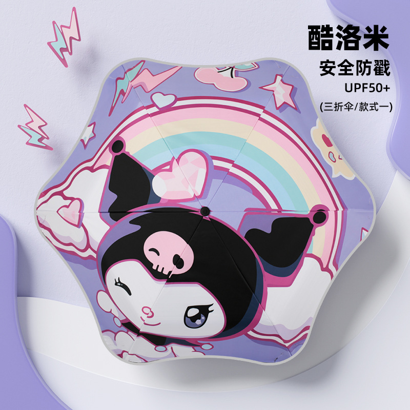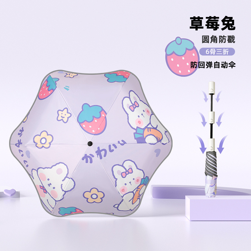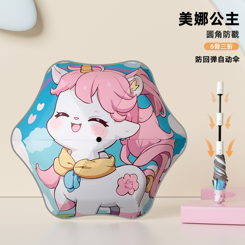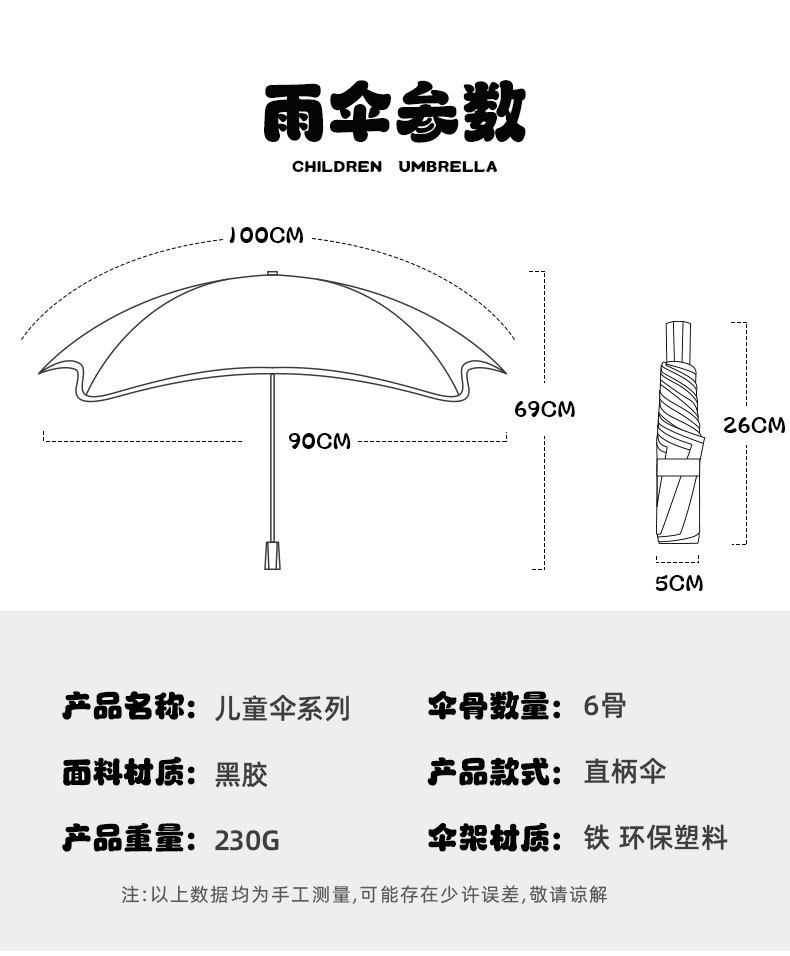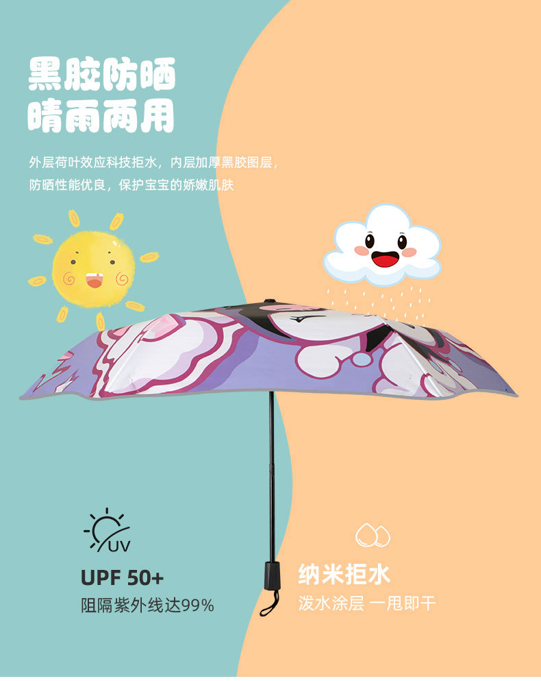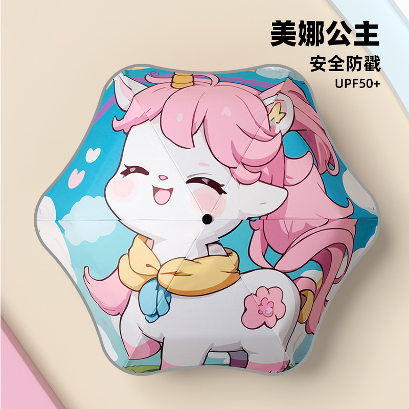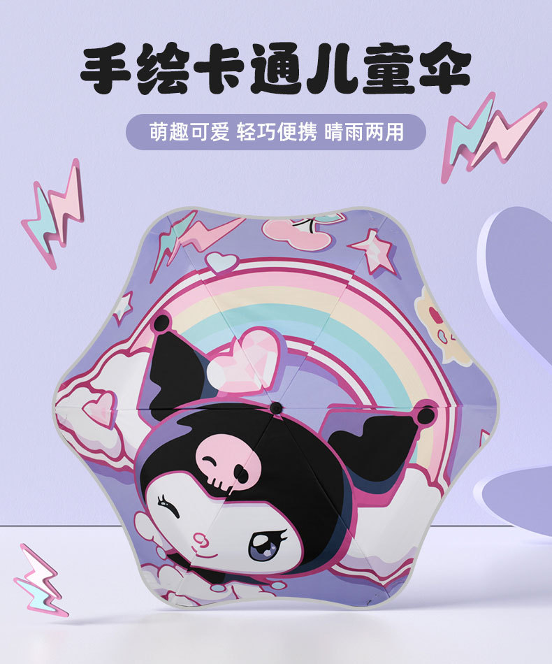어린이 우산 둥근 모서리 아기 초등학생 학교 만화 접이식 비 또는 빛 소녀 파라솔