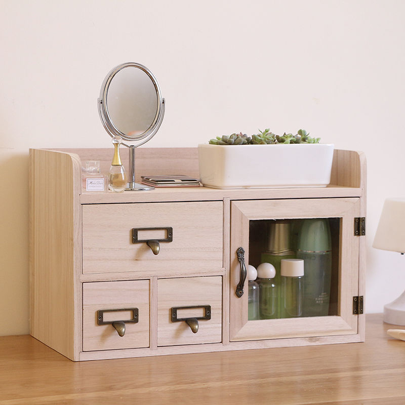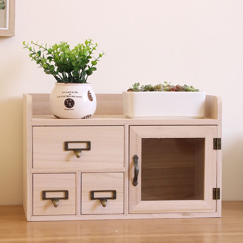 데스크탑 책장 창의적인 단단한 나무 보관 상자 문이 있는 서랍형 사무실 책상 보관 상자 나무 보관 선반스토어 가기