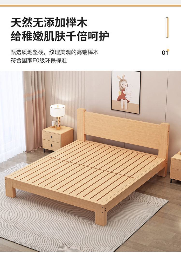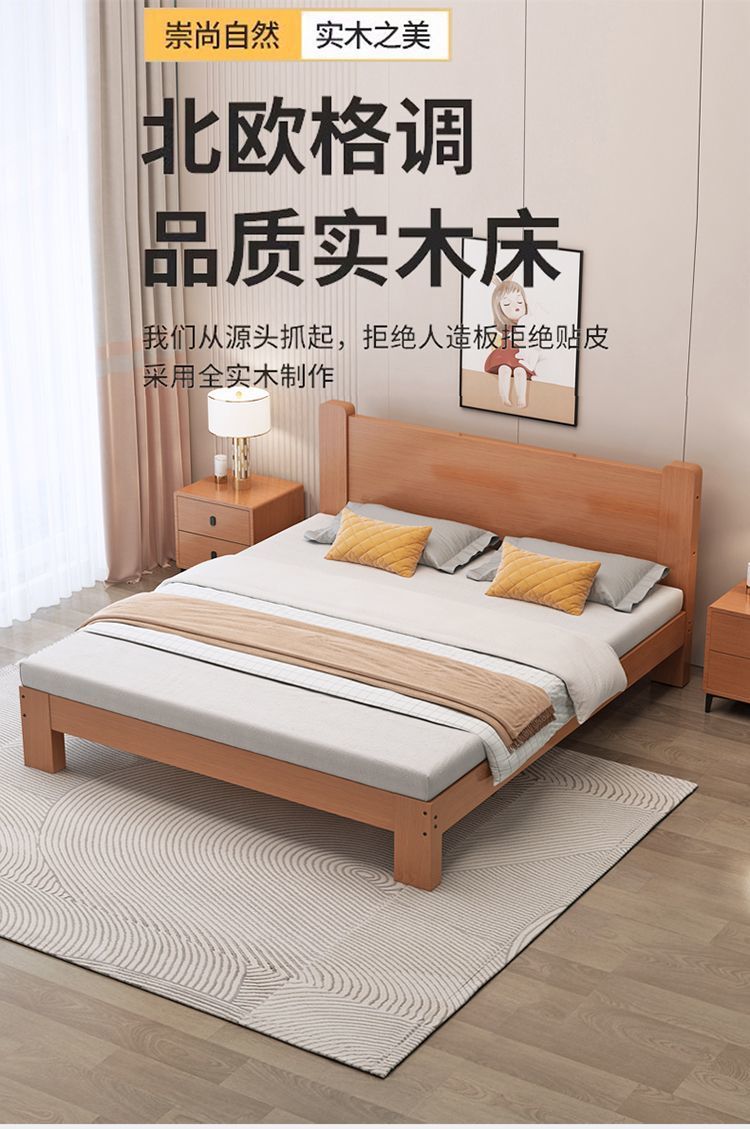 너도밤나무 원목 침대 모던 1.5 심플 홈 더블 1.8 심플 풀 원목 싱글 침대 다다미 침대 프레임스토어 가기