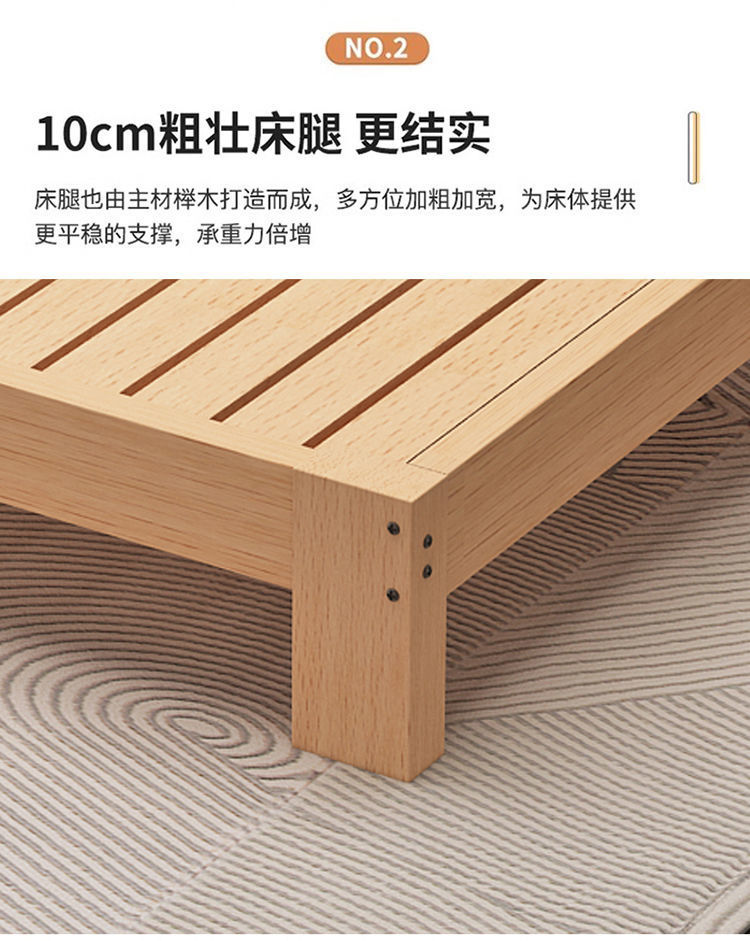 • 전체 너도밤나무 침대 + 침대 옆 + 매트리스(통나무 높이 30~40) 프레임 구조