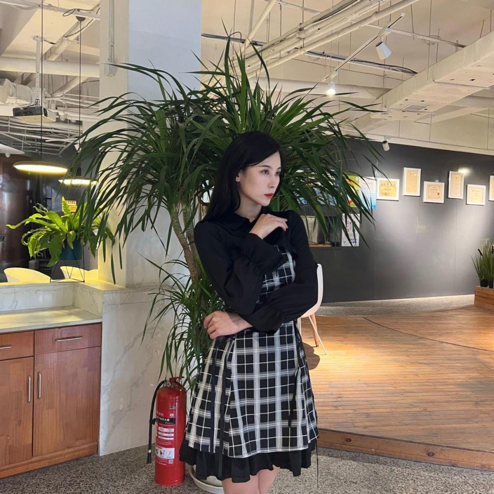 Linjou2025 여름 달콤한 쉬폰 카디건 정장 흑백 격자 무늬 서스펜더 드레스 투피스 여성 스커트스토어 가기