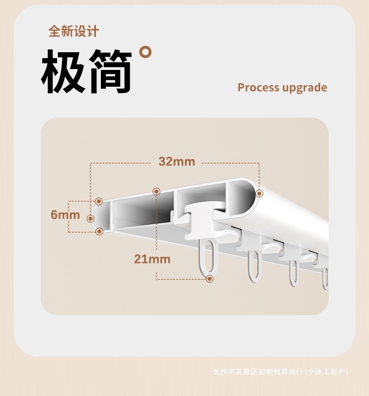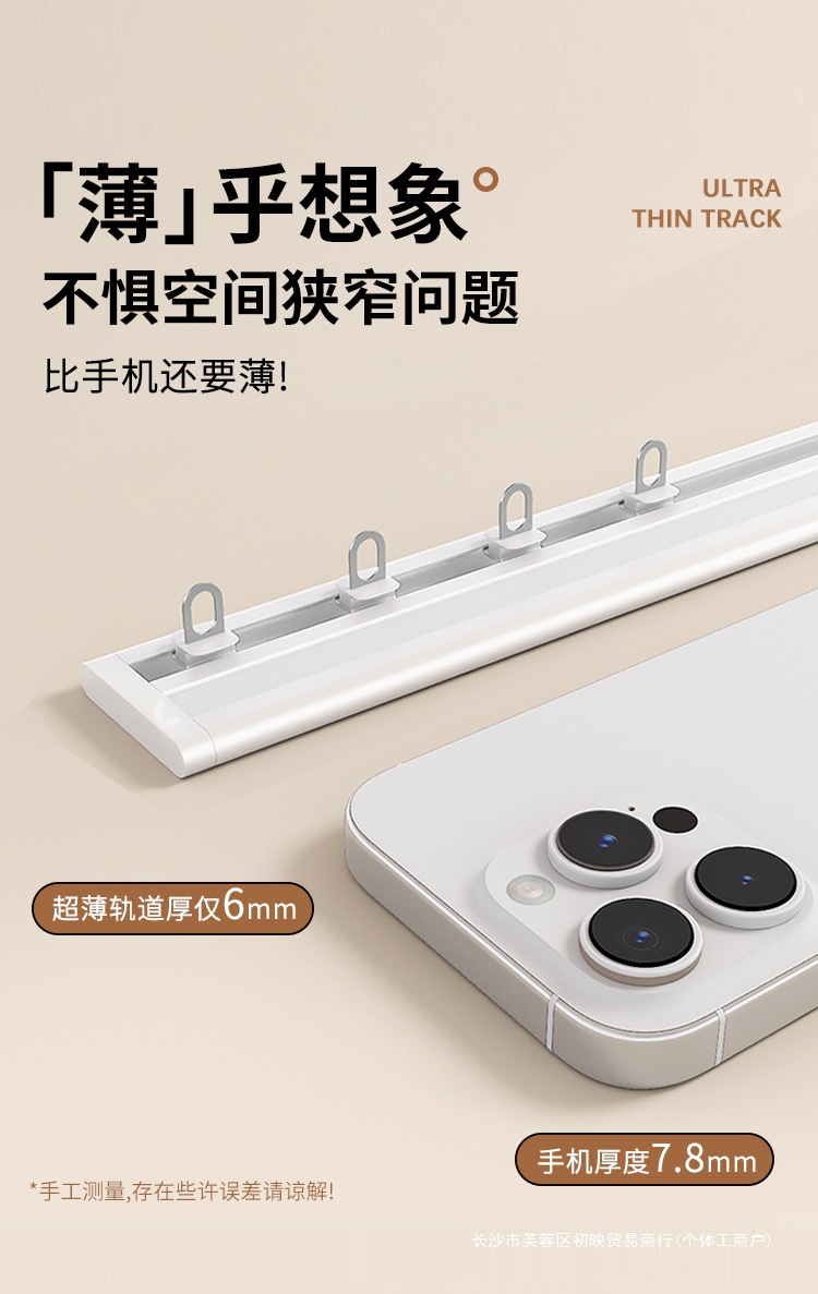 측면 장착형 커튼 트랙, 펀치 없음, 초박형 일체형 알루미늄 합금 무소음 슬라이드 레일, 플로어 창 커튼 박스 후크 유형