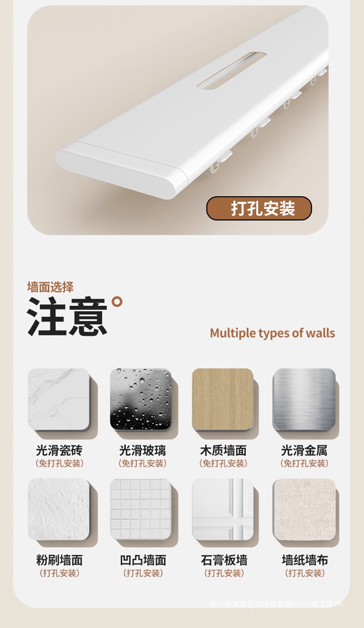 측면 장착형 커튼 트랙, 펀치 없음, 초박형 일체형 알루미늄 합금 무소음 슬라이드 레일, 플로어 창 커튼 박스 후크 유형스토어 가기