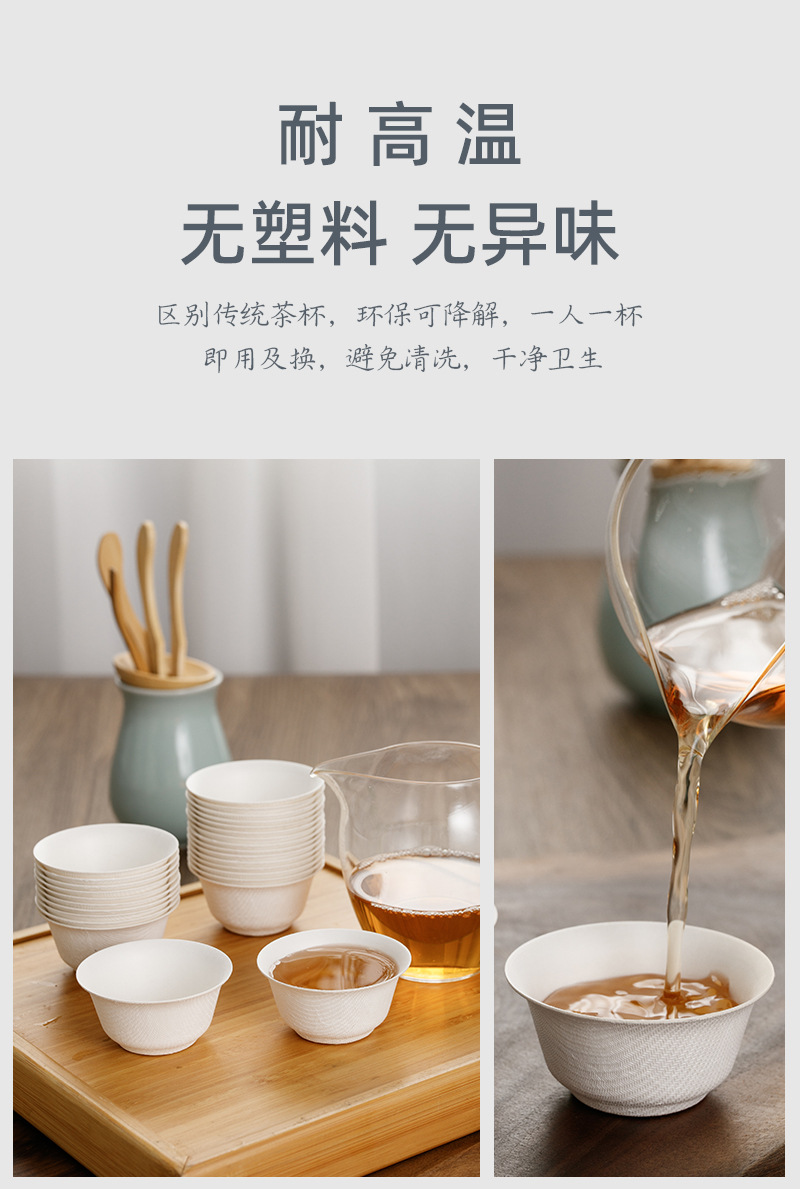 두꺼운 종이컵, 생분해성 일회용 쿵푸 찻잔, 사탕수수 섬유 시음컵, 소형 차 세트 컵, 시음컵