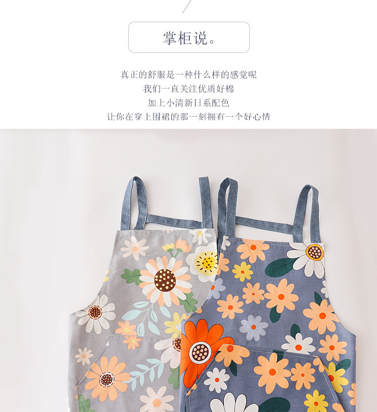 여름 여성을 위한 귀엽고 신선한 면 캔버스 앞치마, 얇고 통기성이 좋은 앞치마, 세련된 한국 스타일 패션 작업 Qinxuan스토어 가기