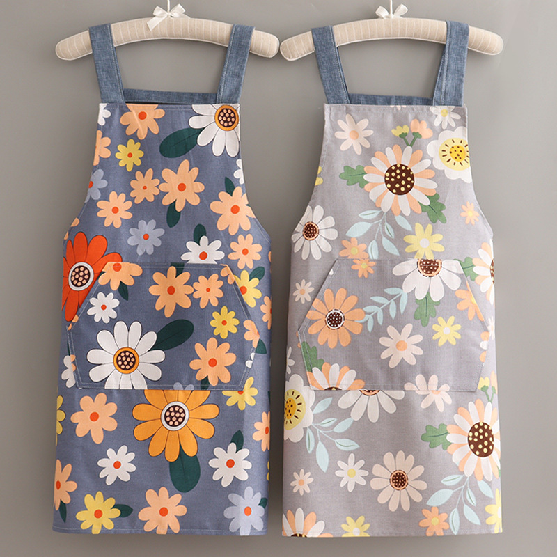 여름 여성을 위한 귀엽고 신선한 면 캔버스 앞치마, 얇고 통기성이 좋은 앞치마, 세련된 한국 스타일 패션 작업 Qinxuan