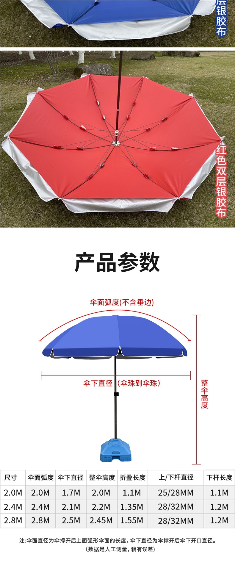 • 2.8m 빨간색 이중층 은색 접착제(기울일 수 있음) + 베이스