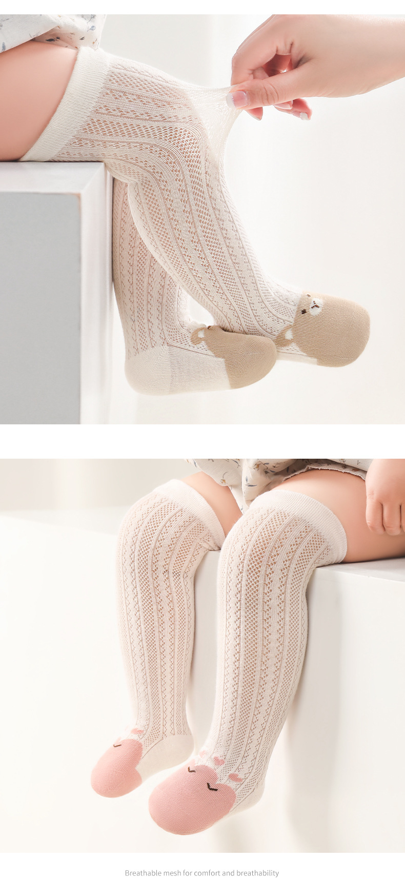 신생아 아기 양말 여름 얇은 메쉬 남성과 여성의 어린이 스타킹 뼈없는 귀여운 만화 아기 양말
