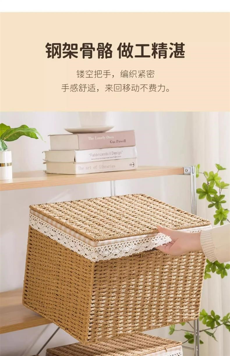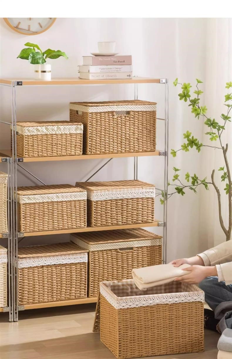 가정용 수납함, 옷장, 의류 및 잡화 정리함, 뚜껑이 있는 등나무 밀짚 일본식 직조 수납 바구니스토어 가기