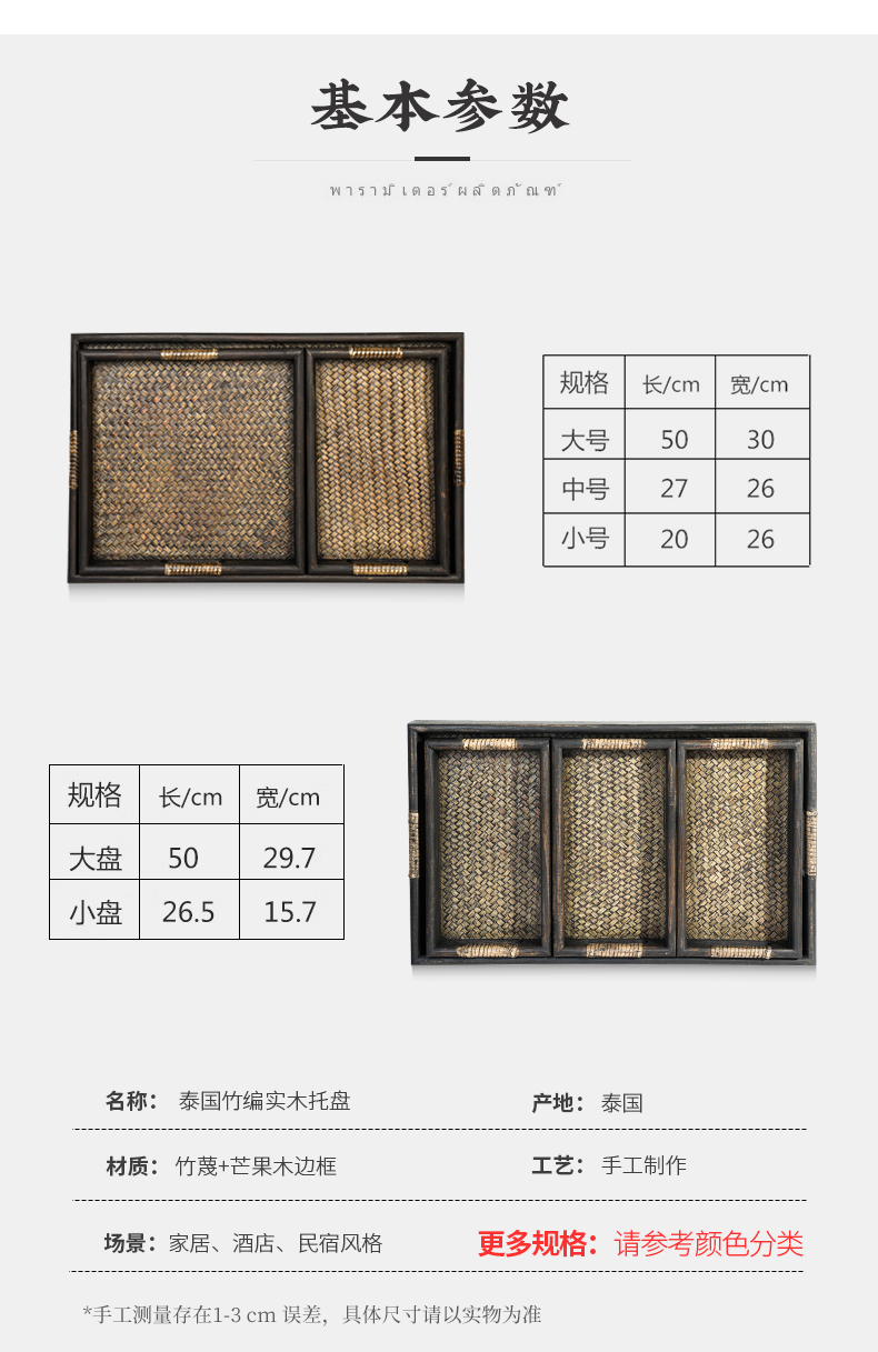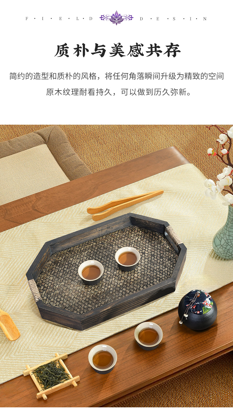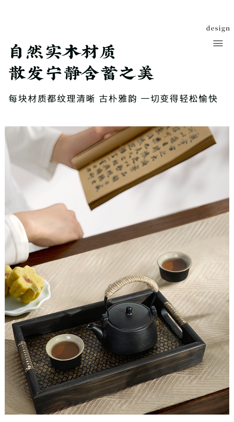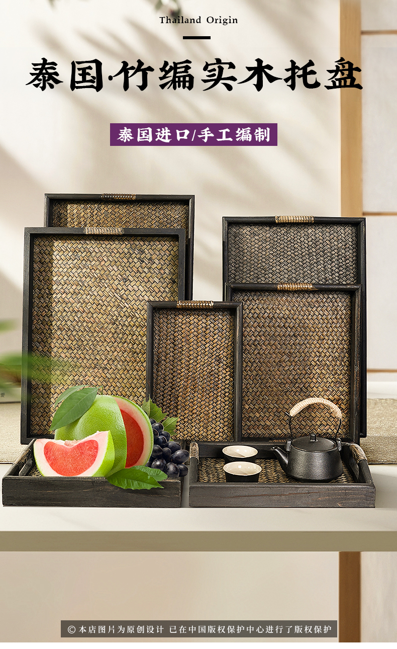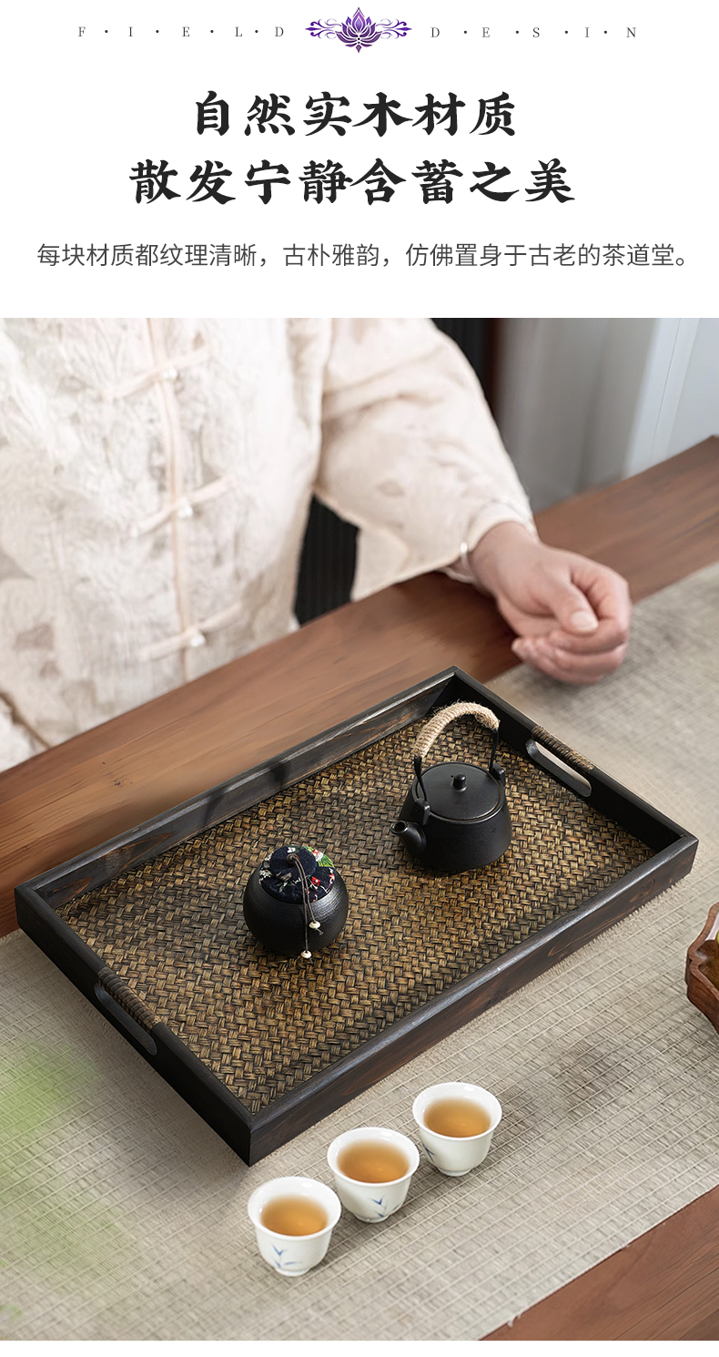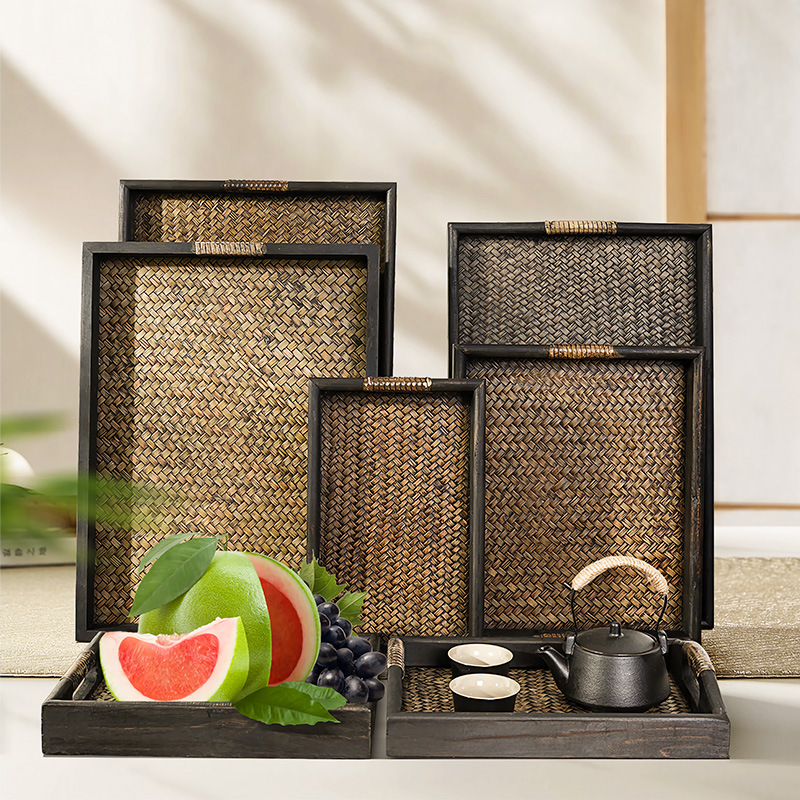 태국 단단한 나무 트레이 직사각형 가정용 찻잔 대나무 차 트레이 호텔 안뜰 일본 복고풍 등나무 트레이