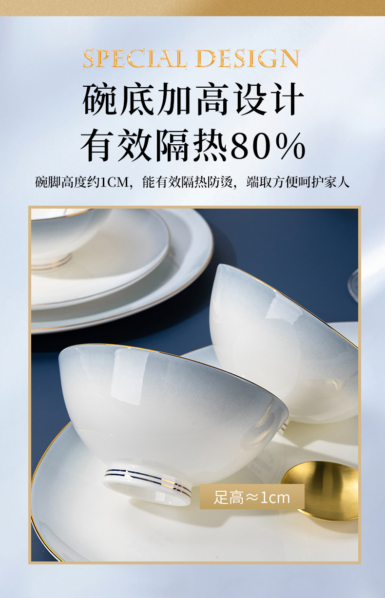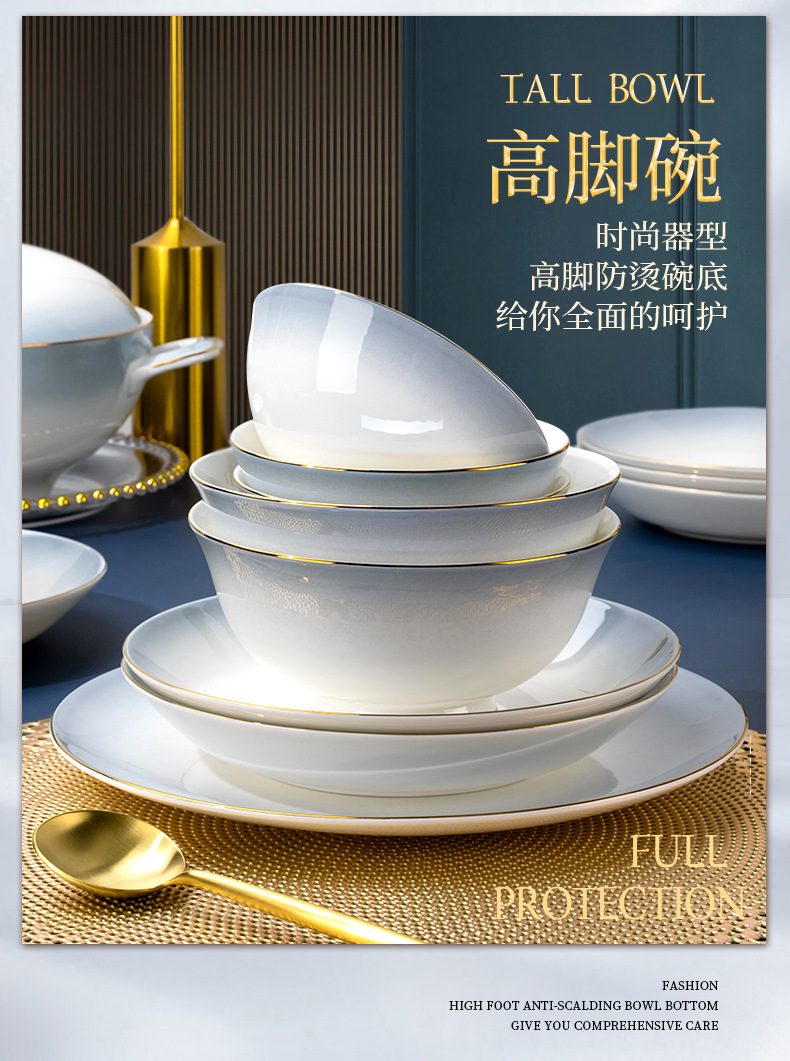 경덕진 그릇 가정용 간단한 북유럽 유약 고온 본차이나 식기 라이트 럭셔리 그라데이션 세라믹 그릇과 접시