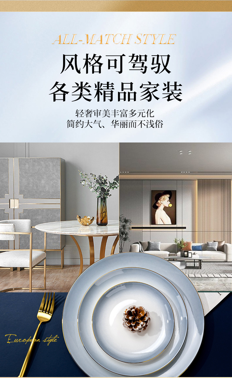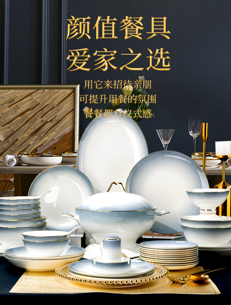 경덕진 그릇 가정용 간단한 북유럽 유약 고온 본차이나 식기 라이트 럭셔리 그라데이션 세라믹 그릇과 접시스토어 가기