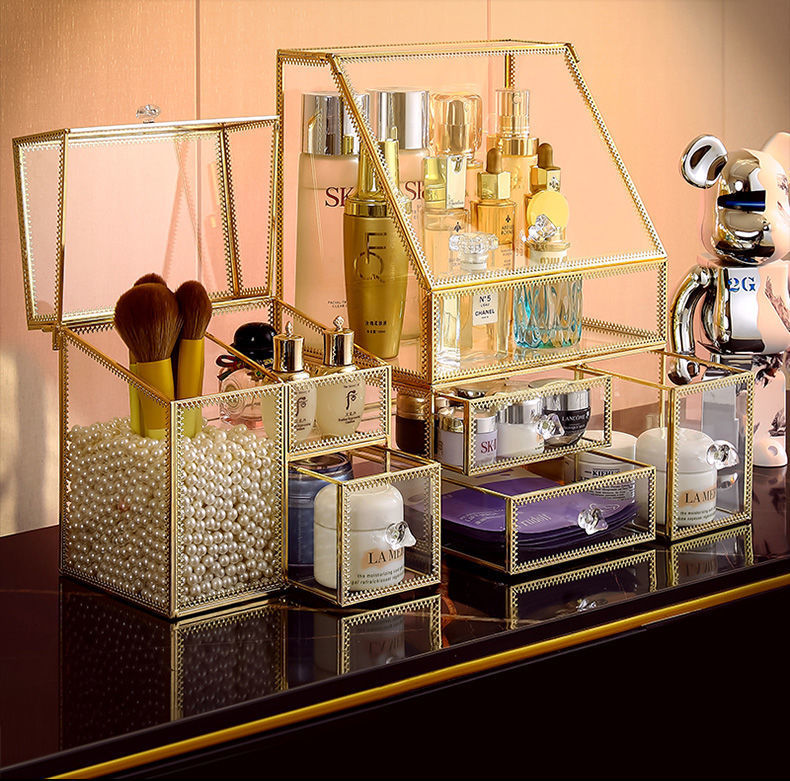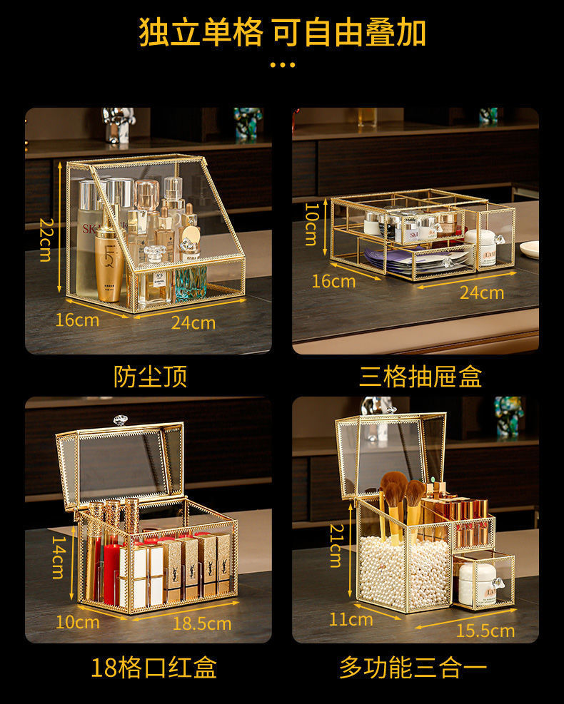 인터넷 연예인 유리 화장품 보관 상자 방진 가정용 데스크탑 대용량 스킨 케어 제품 보관 랙 립스틱 보관 상자