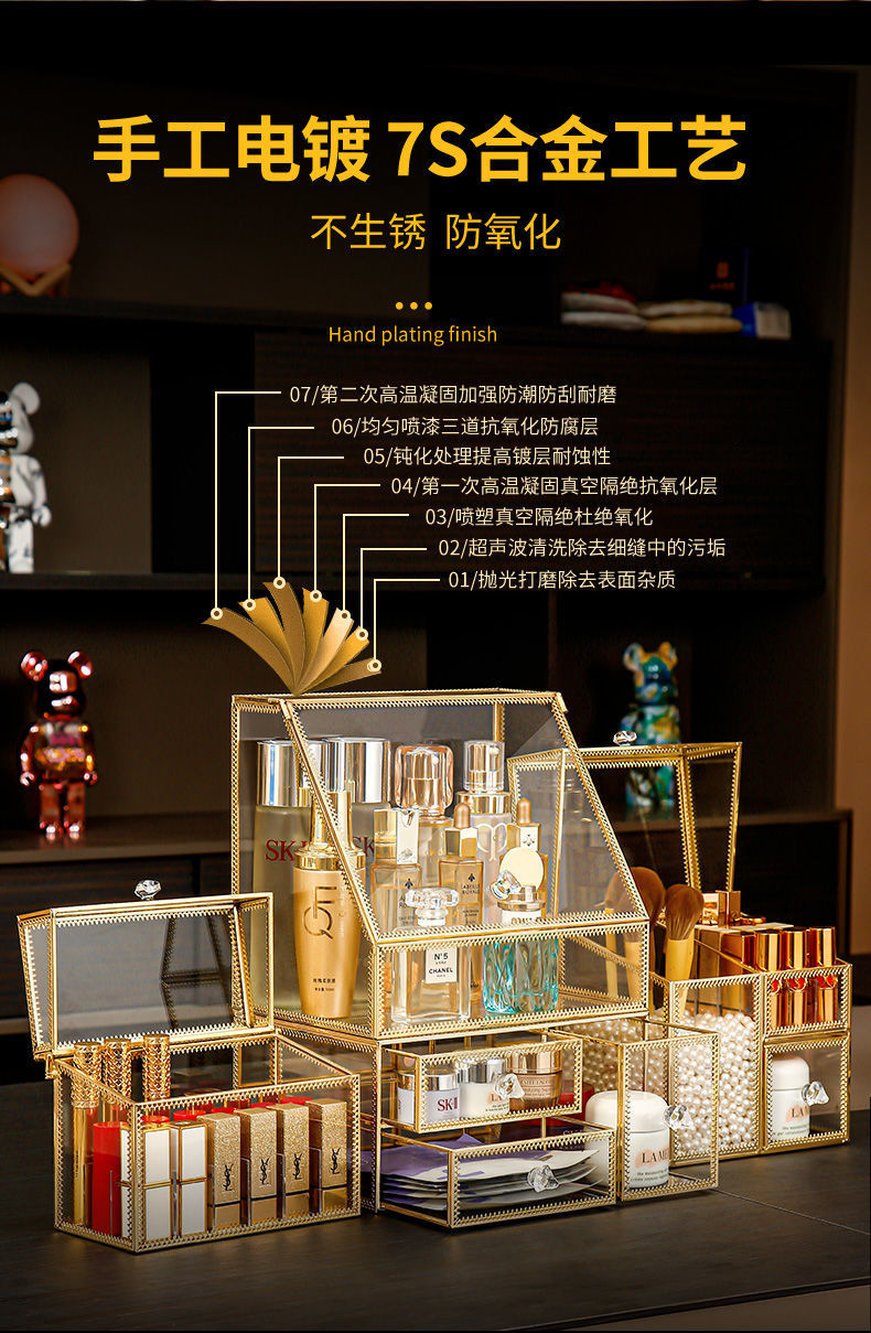 인터넷 연예인 유리 화장품 보관 상자 방진 가정용 데스크탑 대용량 스킨 케어 제품 보관 랙 립스틱 보관 상자스토어 가기