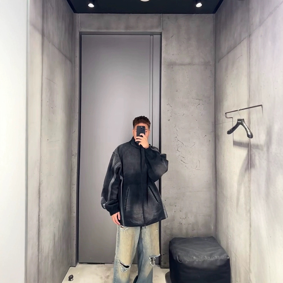 고급 버전 B 25FW 새로운 공동 브랜드 양면 데님 재킷 Os 루즈 버전 남성과 여성을 위한 동일한 스타일스토어 가기