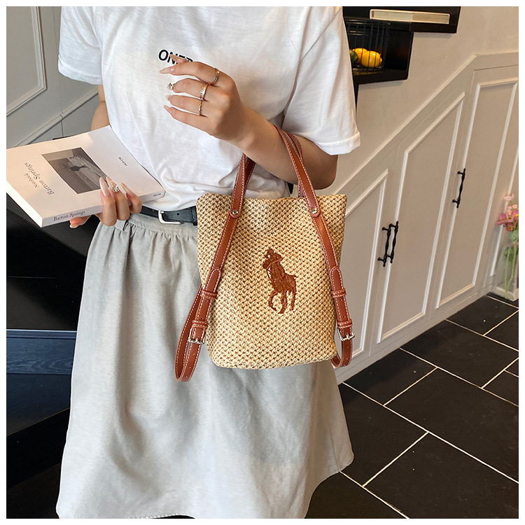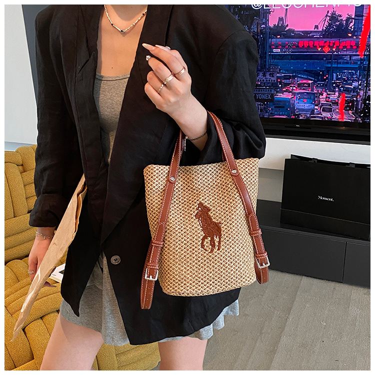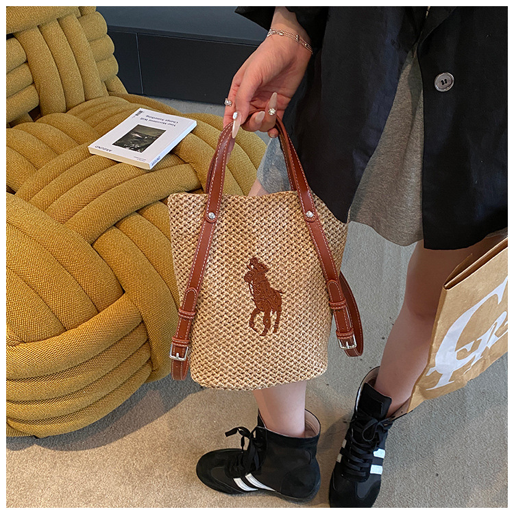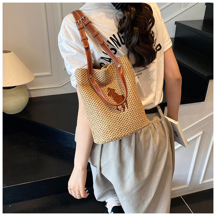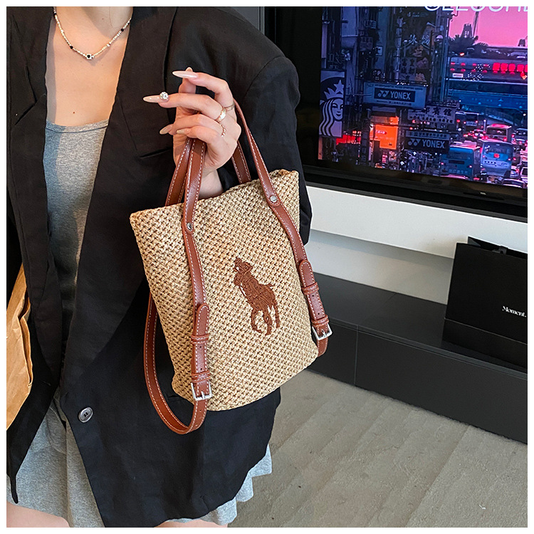 여성을위한 라피아 밀짚 가방 2025 새로운 여름 해변 토트 백 대용량 어깨 겨드랑이 휴대용 짠 가방