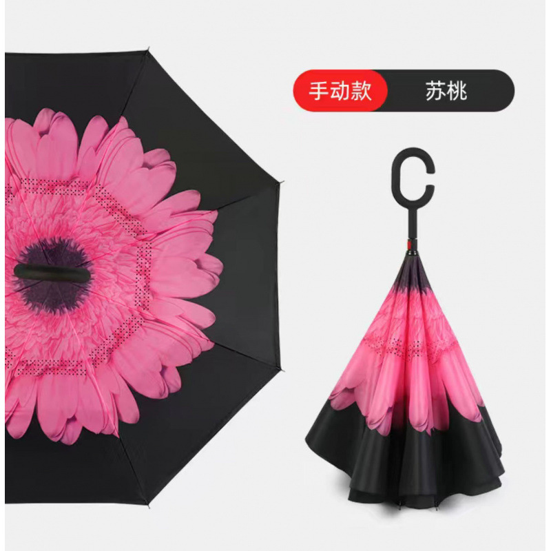 역방향 우산 긴 손잡이 직선형 스탠딩 C형 역방향 우산 대형 더블 자동차 우산 선물 인쇄 L 광고스토어 가기