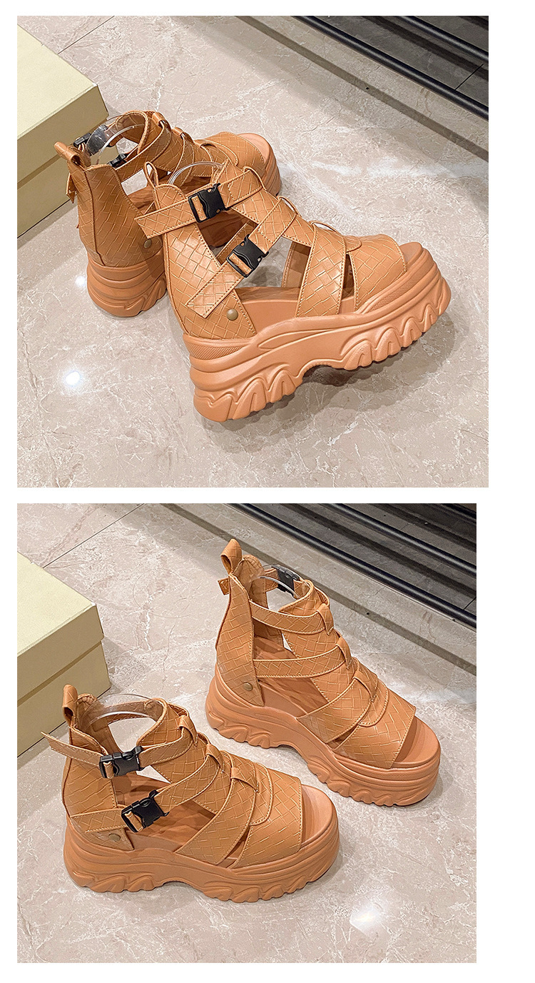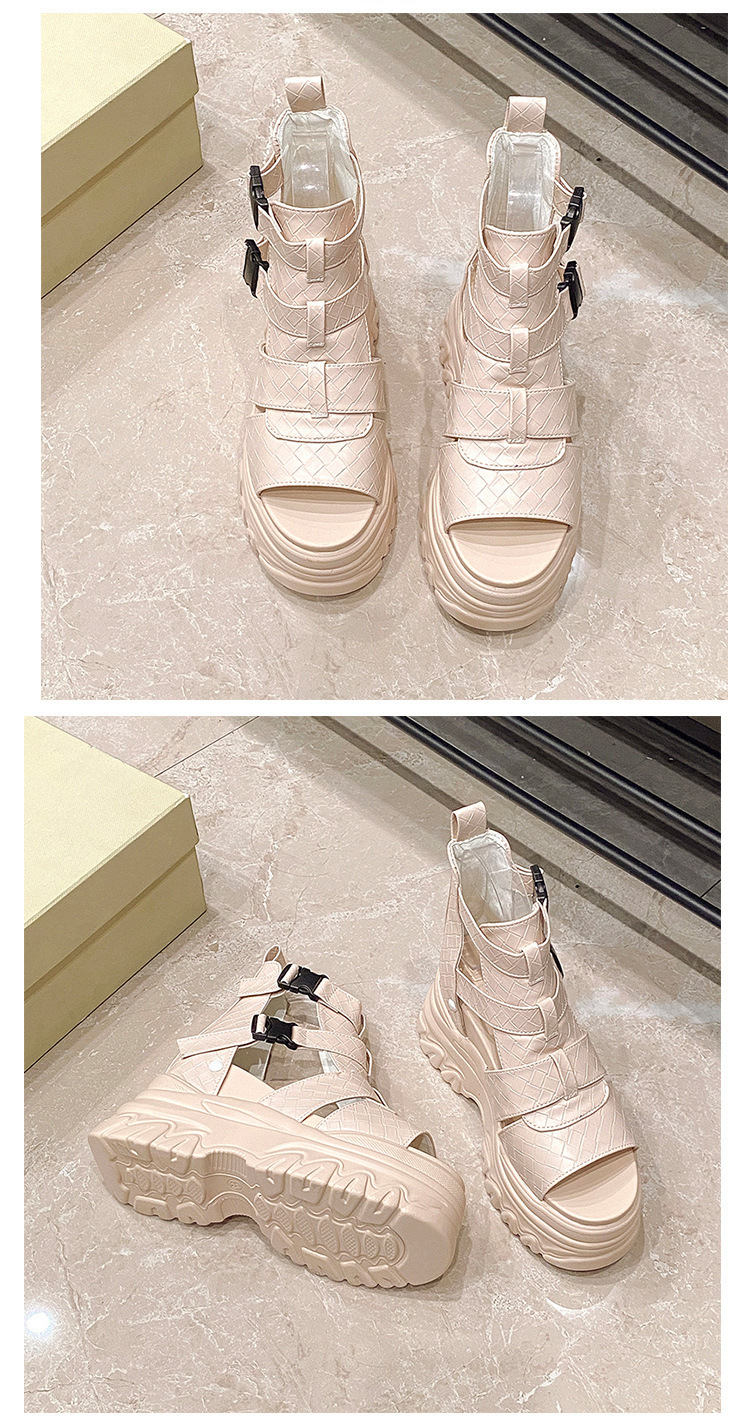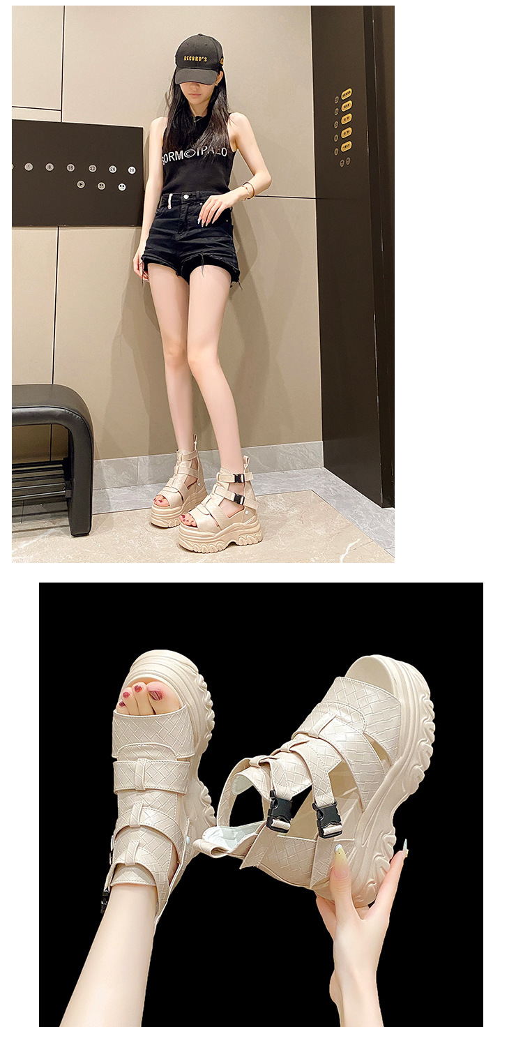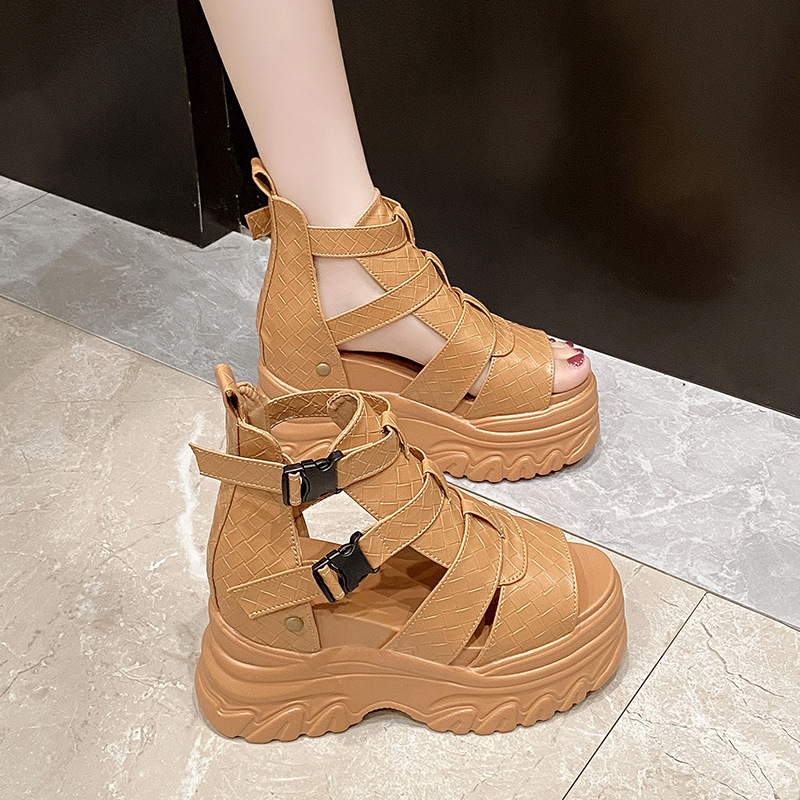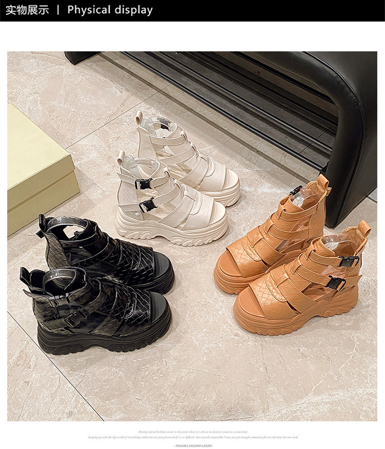 2025 여름 여성용 키높이 로마 샌들, 패셔너블하고 캐주얼한 플랫폼 두꺼운 밑창 하이탑 샌들, 하이힐 피쉬 입 샌들스토어 가기