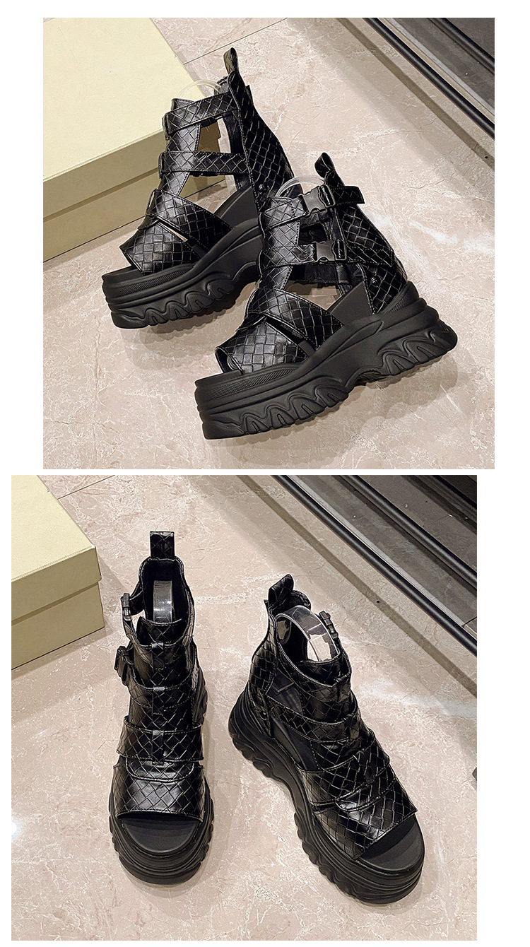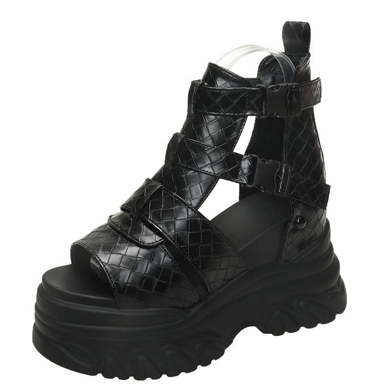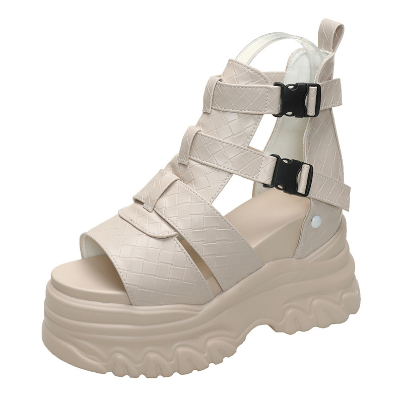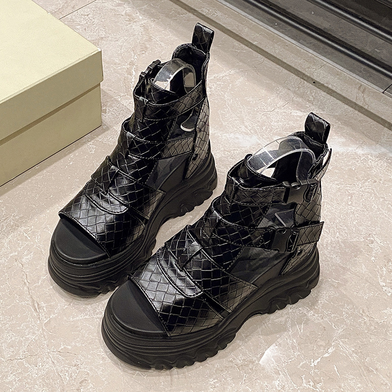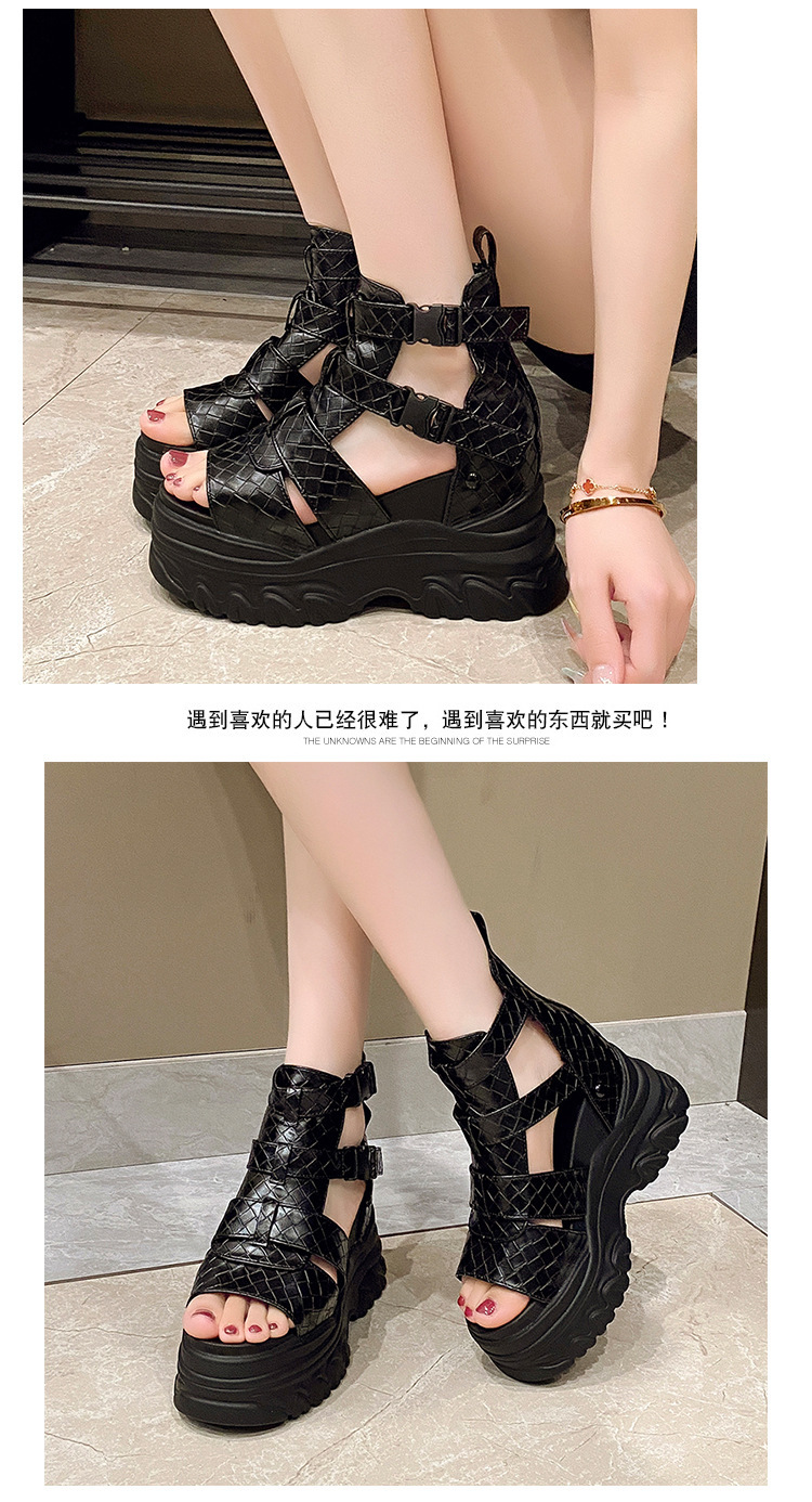 2025 여름 여성용 키높이 로마 샌들, 패셔너블하고 캐주얼한 플랫폼 두꺼운 밑창 하이탑 샌들, 하이힐 피쉬 입 샌들스토어 가기