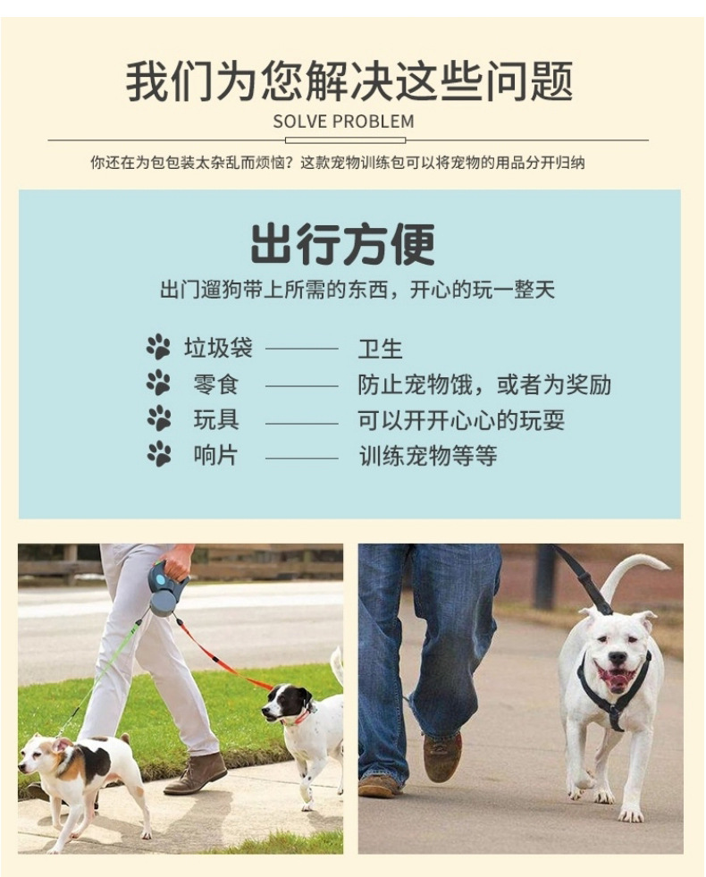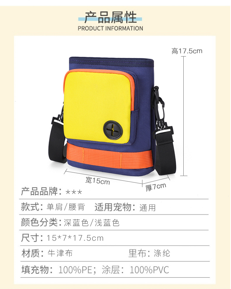 새로운 애완동물 용품, 편리한 개 훈련 크로스백, 여행용 개 간식 가방